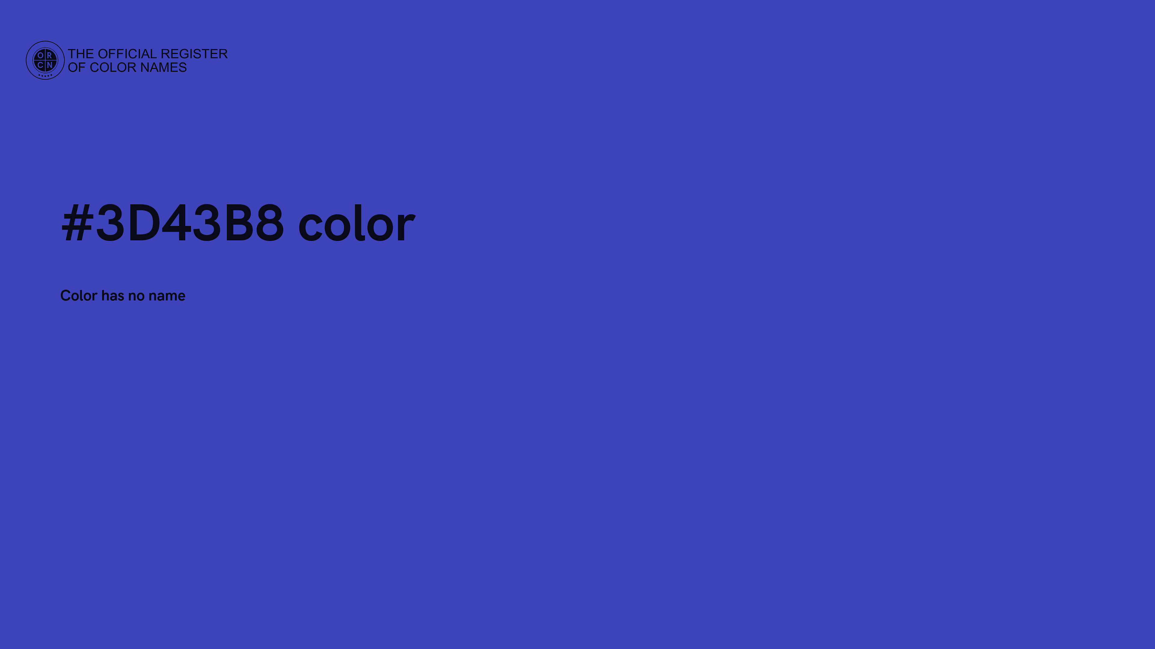 For printing in non digital world, #3D43B8 is represented in CMYK as 48 Cyan, 46 Magenta, 0 Yellow, and 28 Black (Key) (C:48 M:46 Y:0 K:28).
