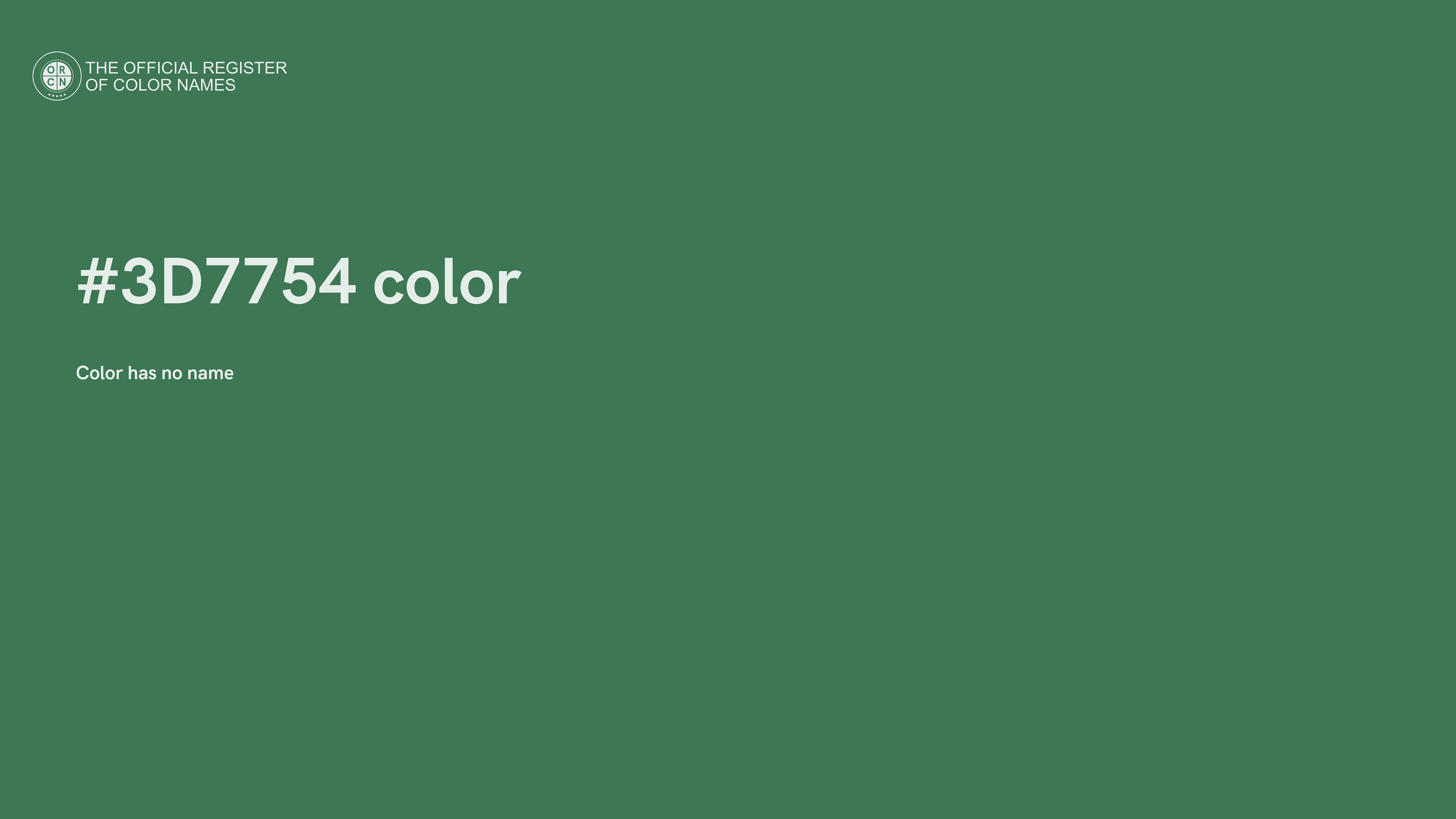 The digital color HEX #3D7754 belongs to the Spring Green Color Family featuring Mild Saturation (Saturation Family) and Neutral (Brightness Family).