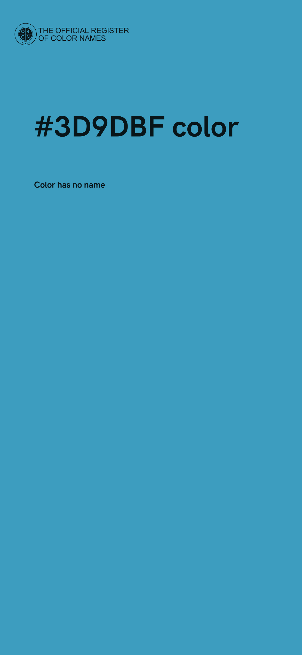 For printing in non digital world, #3D9DBF is represented in CMYK as 51 Cyan, 13 Magenta, 0 Yellow, and 25 Black (Key) (C:51 M:13 Y:0 K:25).