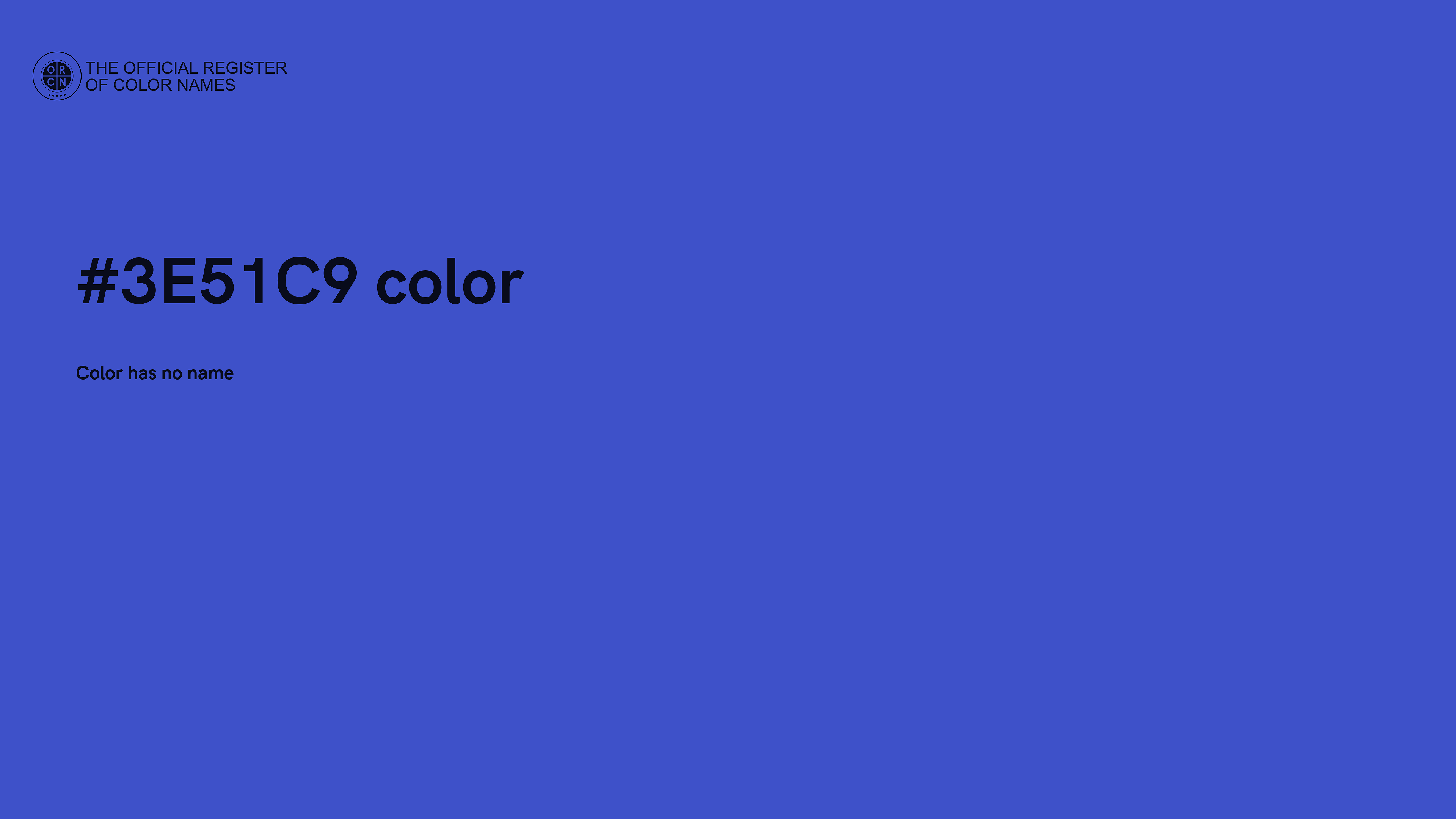 For printing in non digital world, #3E51C9 is represented in CMYK as 55 Cyan, 47 Magenta, 0 Yellow, and 21 Black (Key) (C:55 M:47 Y:0 K:21).
