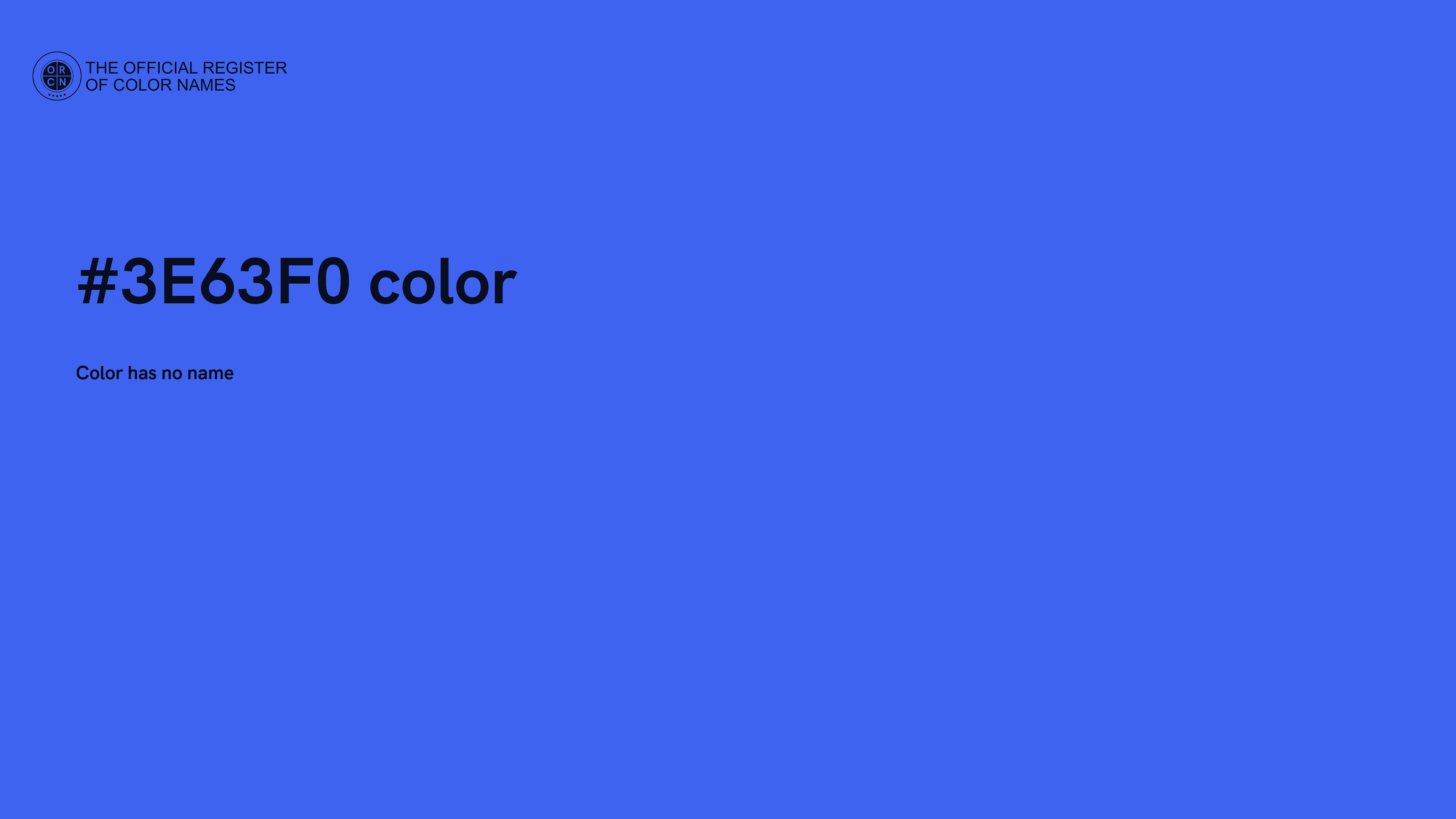The digital color HEX #3E63F0 belongs to the Blue Color Family featuring Full Saturation (Saturation Family) and Light (Brightness Family).