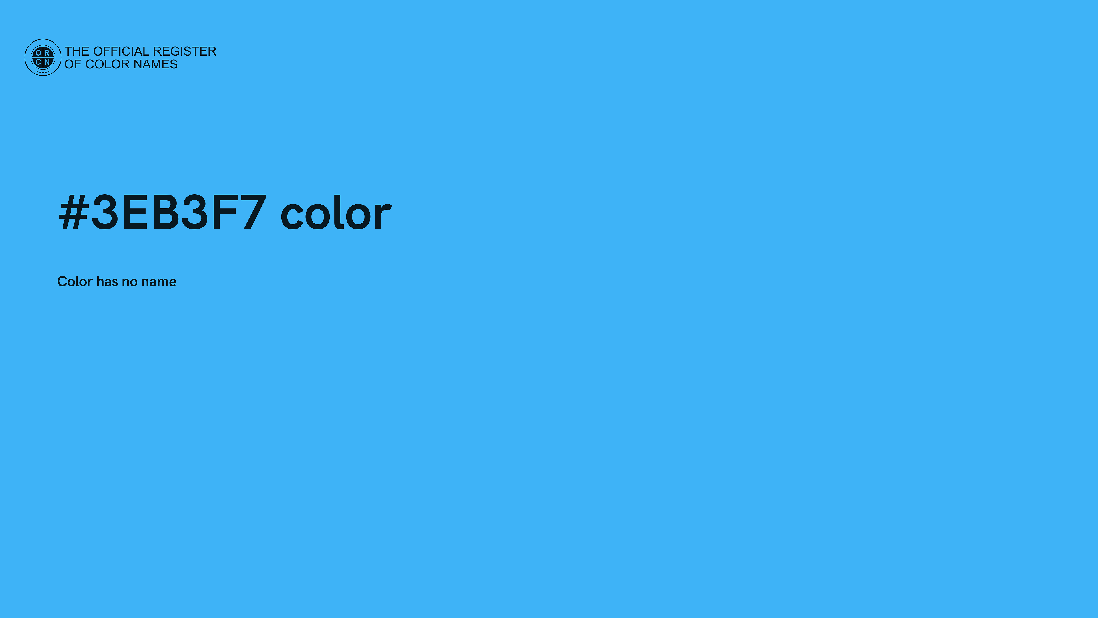 The digital color HEX #3EB3F7 belongs to the Azure Color Family featuring Full Saturation (Saturation Family) and Very Light (Brightness Family).