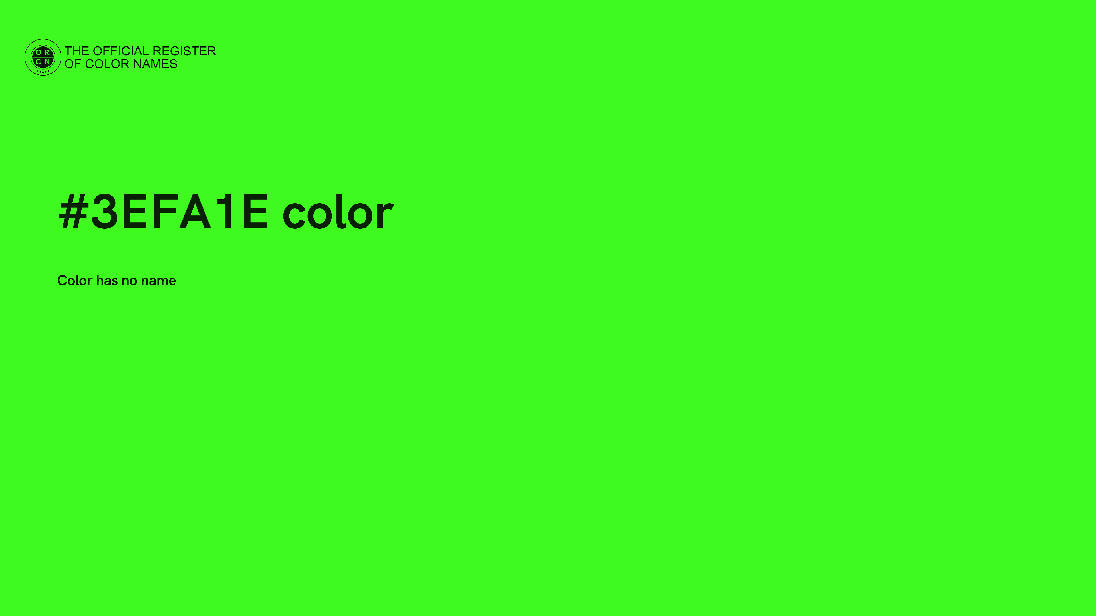 The digital color HEX #3EFA1E belongs to the Green Color Family featuring Full Saturation (Saturation Family) and Light (Brightness Family).
