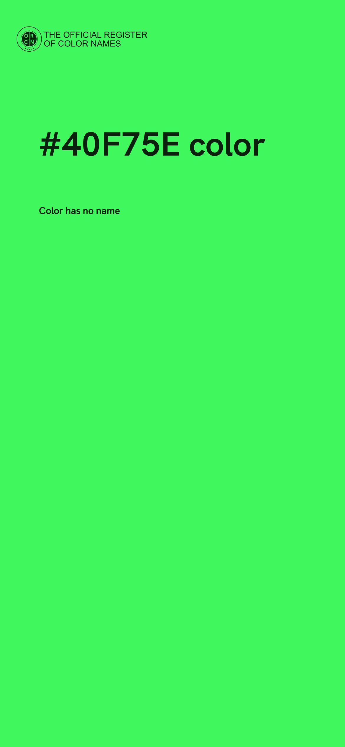 The digital color HEX #40F75E belongs to the Green Color Family featuring Full Saturation (Saturation Family) and Very Light (Brightness Family).