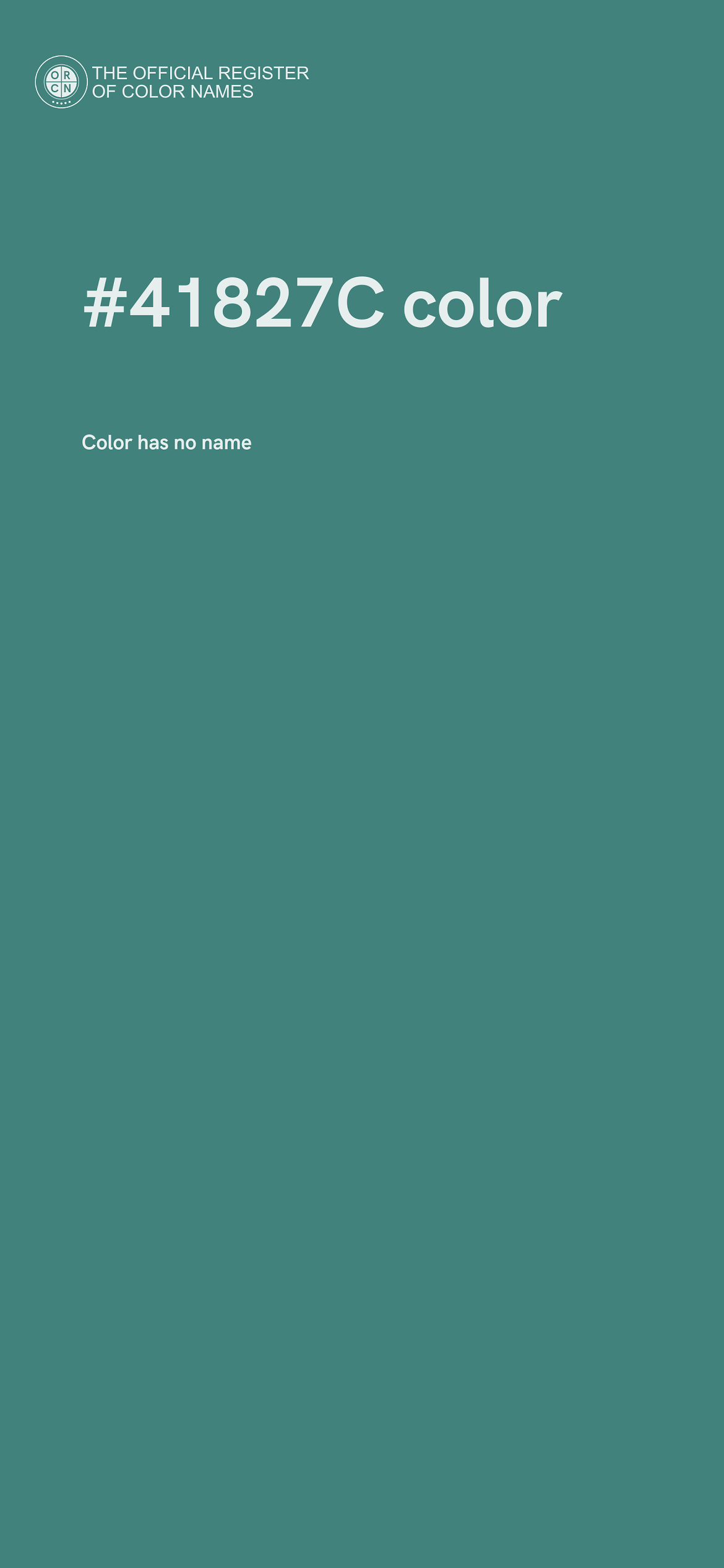 The digital color HEX #41827C belongs to the Cyan Color Family featuring Mild Saturation (Saturation Family) and Neutral (Brightness Family).