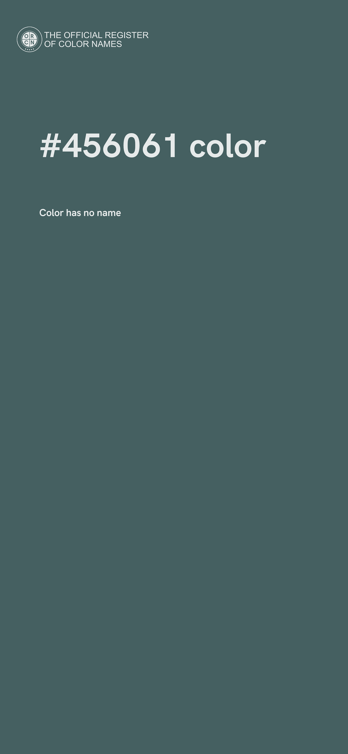 For printing in non digital world, #456061 is represented in CMYK as 11 Cyan, 0 Magenta, 0 Yellow, and 62 Black (Key) (C:11 M:0 Y:0 K:62).