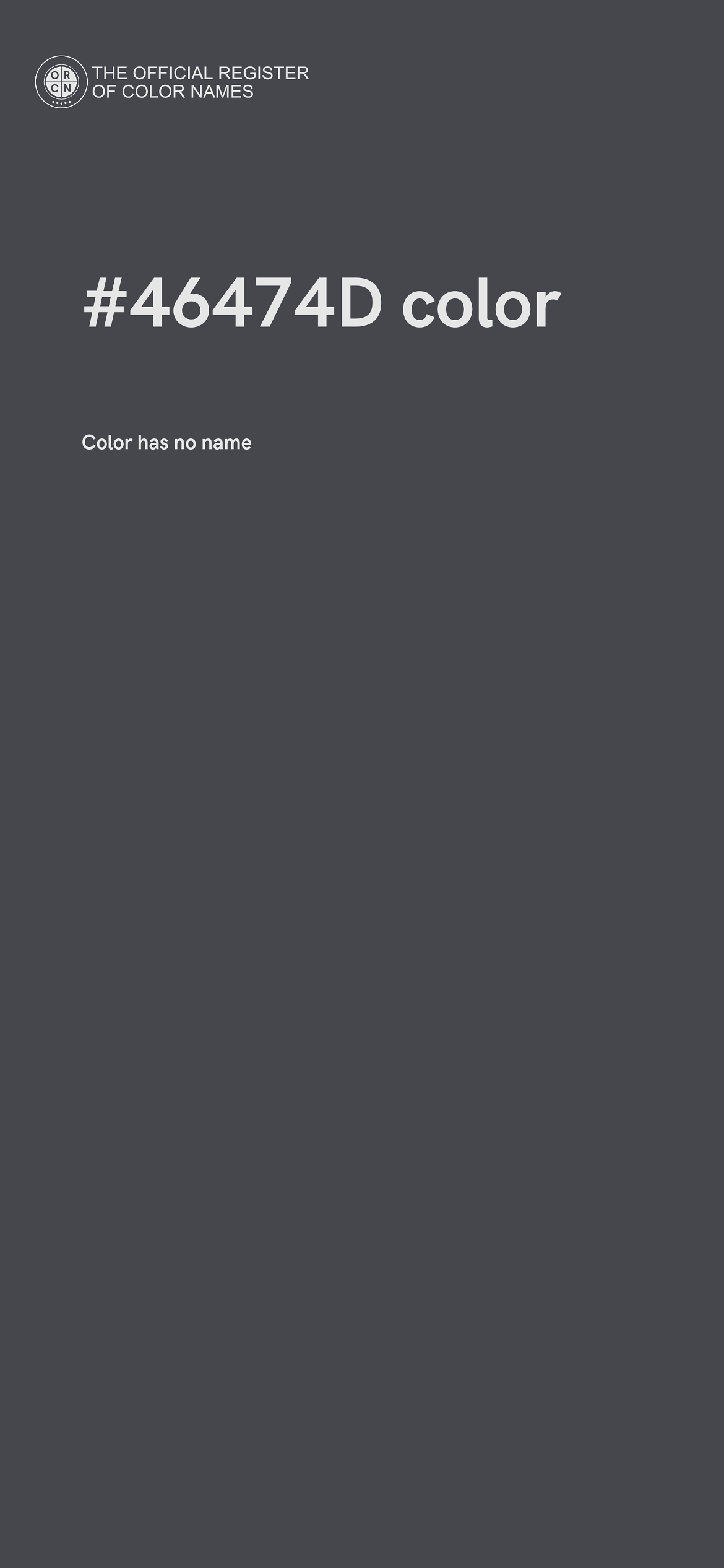 The digital color HEX #46474D belongs to the Blue Color Family featuring Desaturated (Saturation Family) and Neutral (Brightness Family).