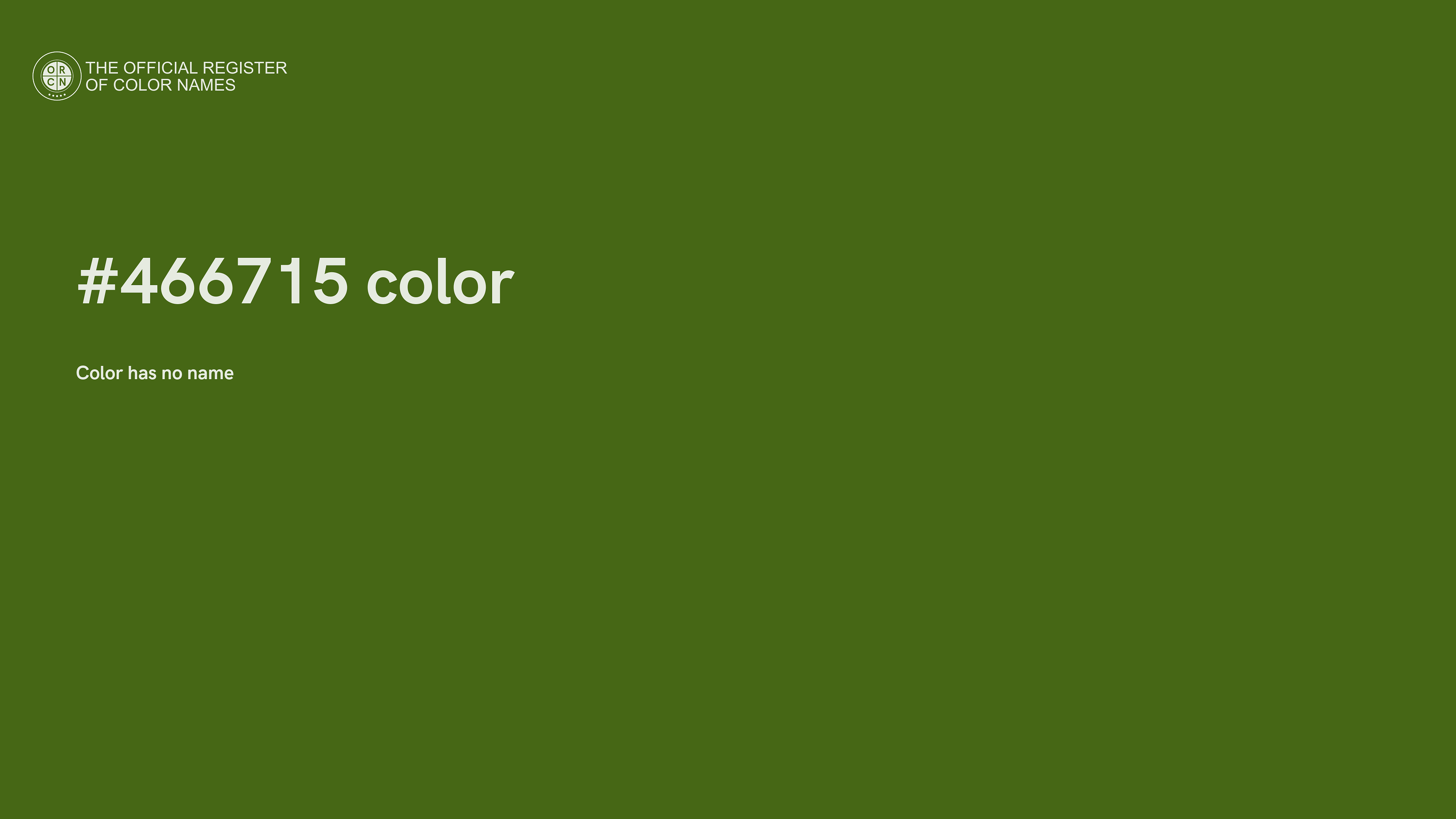 For printing in non digital world, #466715 is represented in CMYK as 13 Cyan, 0 Magenta, 32 Yellow, and 60 Black (Key) (C:13 M:0 Y:32 K:60).