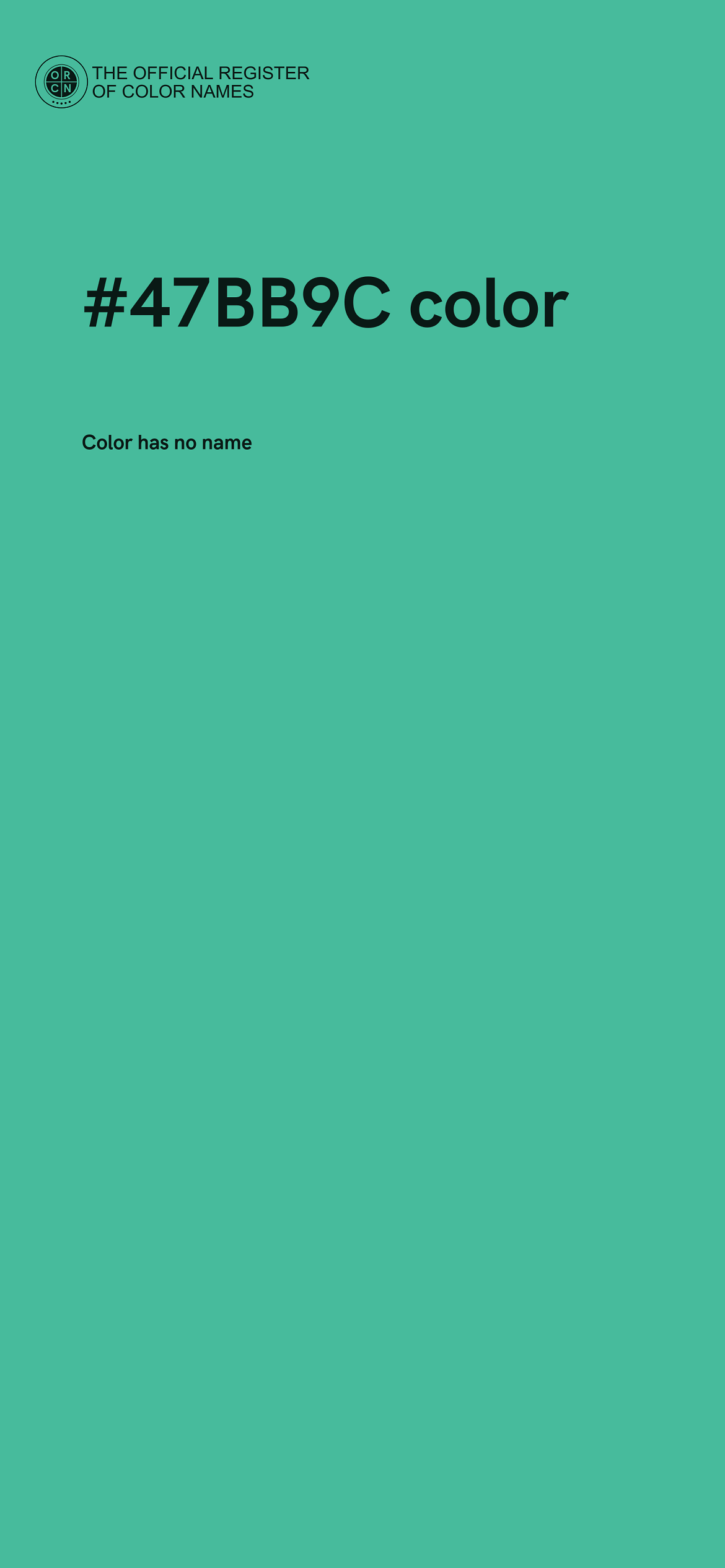 For printing in non digital world, #47BB9C is represented in CMYK as 45 Cyan, 0 Magenta, 12 Yellow, and 27 Black (Key) (C:45 M:0 Y:12 K:27).