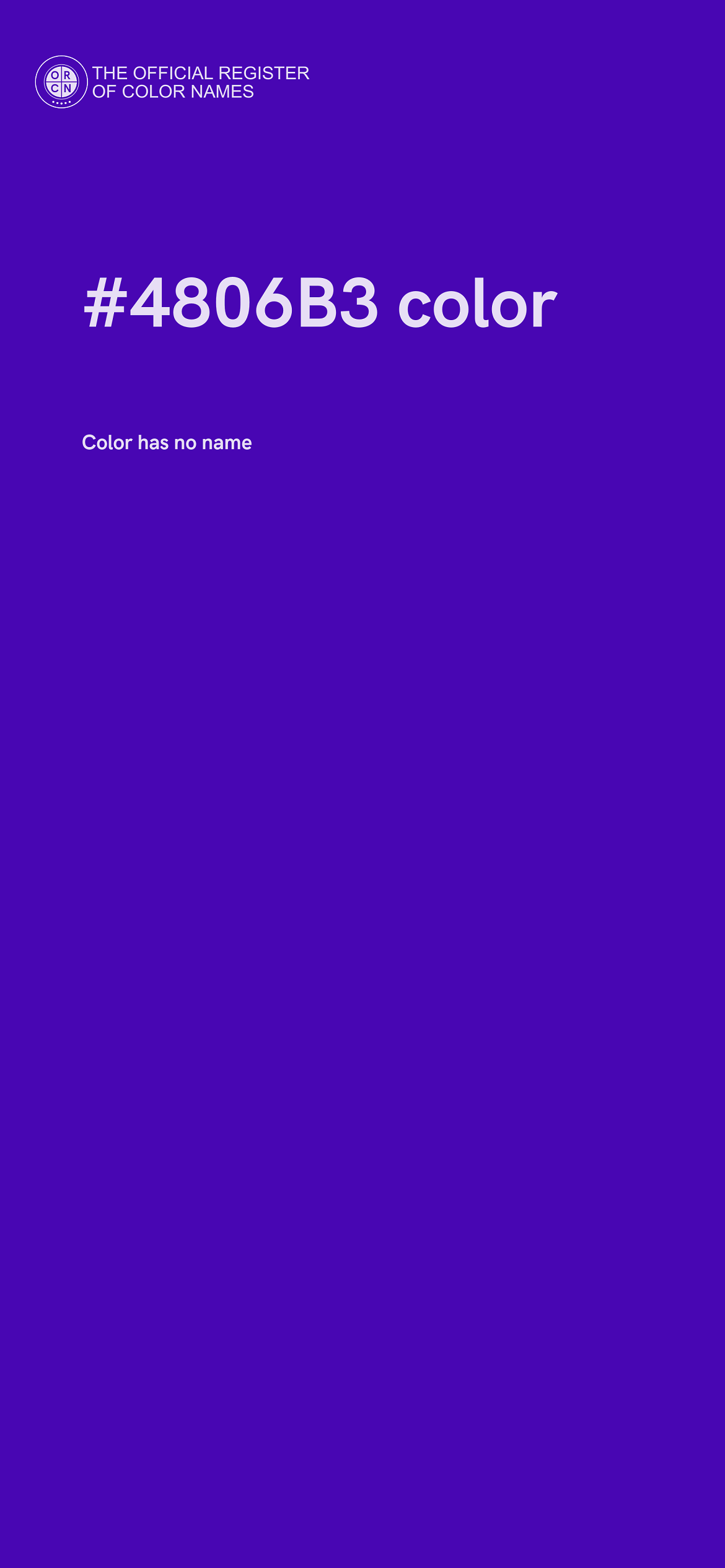 The digital color HEX #4806B3 belongs to the Violet Color Family featuring Full Saturation (Saturation Family) and Neutral (Brightness Family).