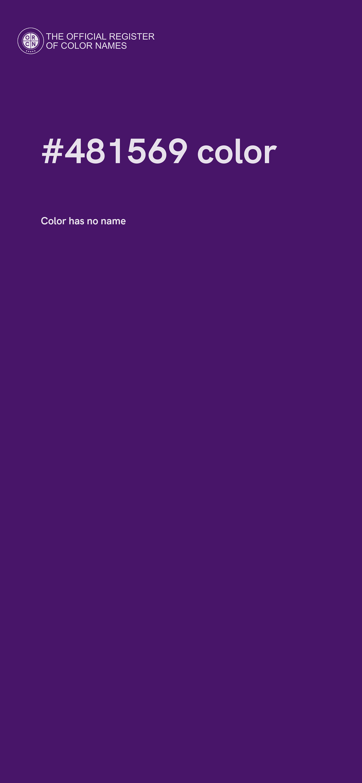 The digital color HEX #481569 belongs to the Violet Color Family featuring High Saturation (Saturation Family) and Neutral (Brightness Family).