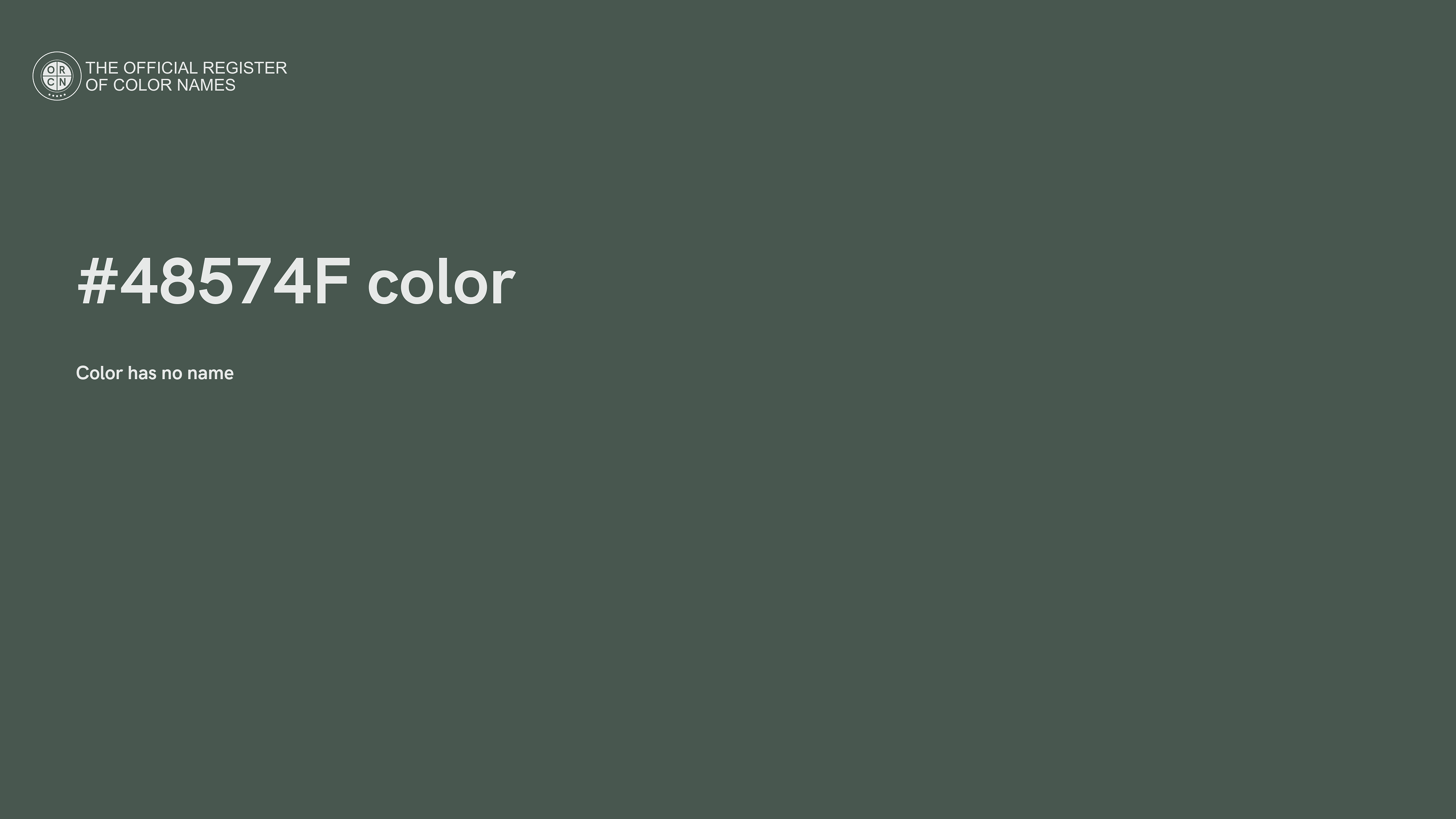 The digital color HEX #48574F belongs to the Spring Green Color Family featuring Desaturated (Saturation Family) and Neutral (Brightness Family).