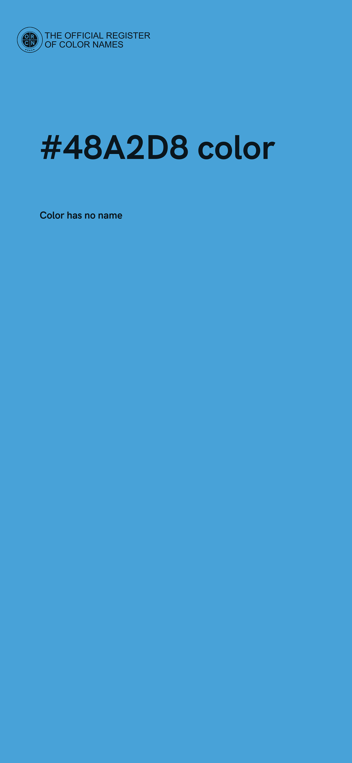 The digital color HEX #48A2D8 belongs to the Azure Color Family featuring High Saturation (Saturation Family) and Light (Brightness Family).
