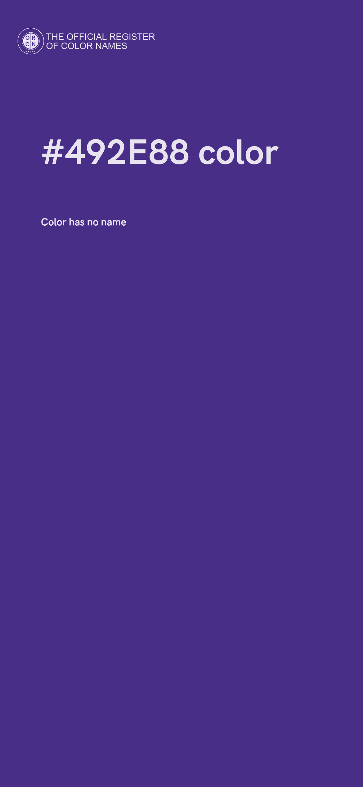 For printing in non digital world, #492E88 is represented in CMYK as 25 Cyan, 35 Magenta, 0 Yellow, and 47 Black (Key) (C:25 M:35 Y:0 K:47).