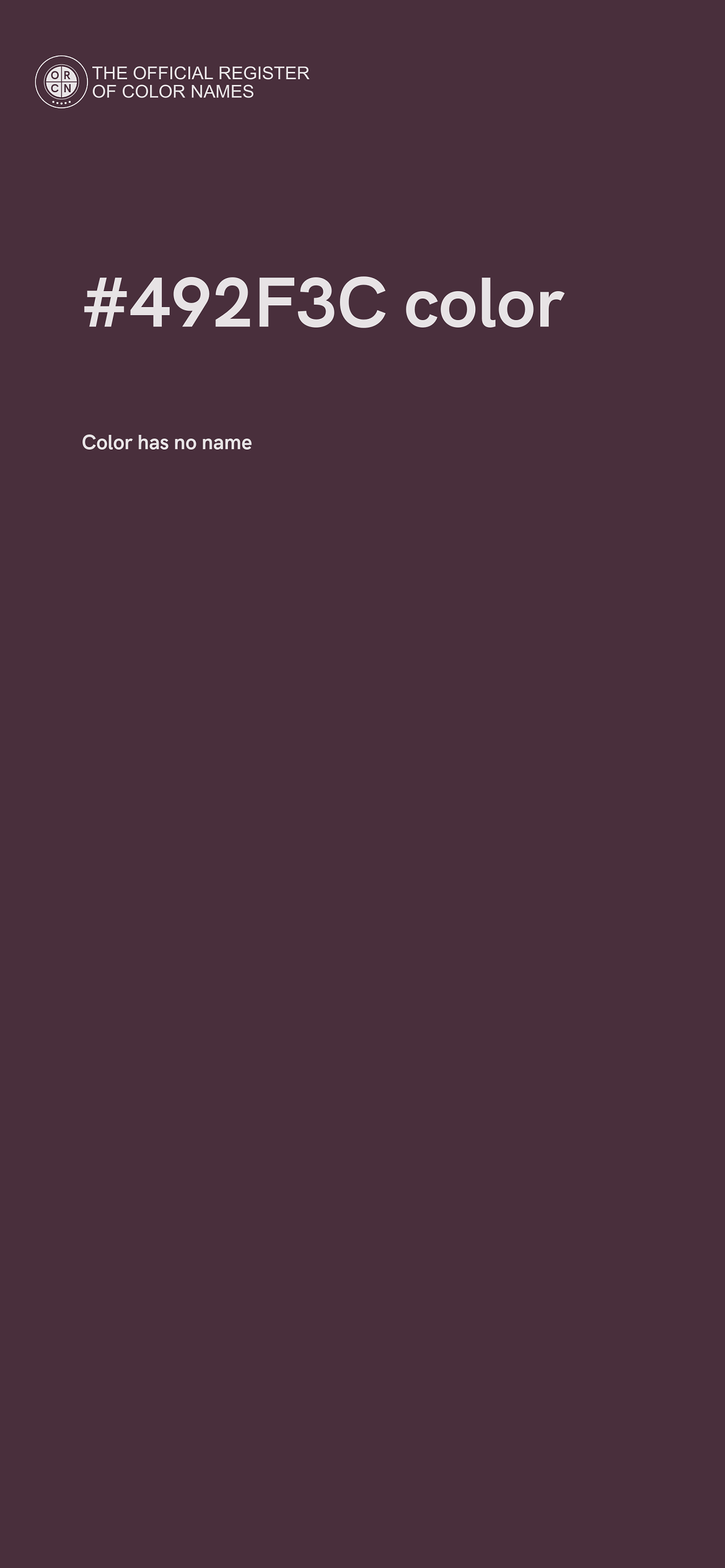 The digital color HEX #492F3C belongs to the Rose Color Family featuring Low Saturation (Saturation Family) and Dark (Brightness Family).