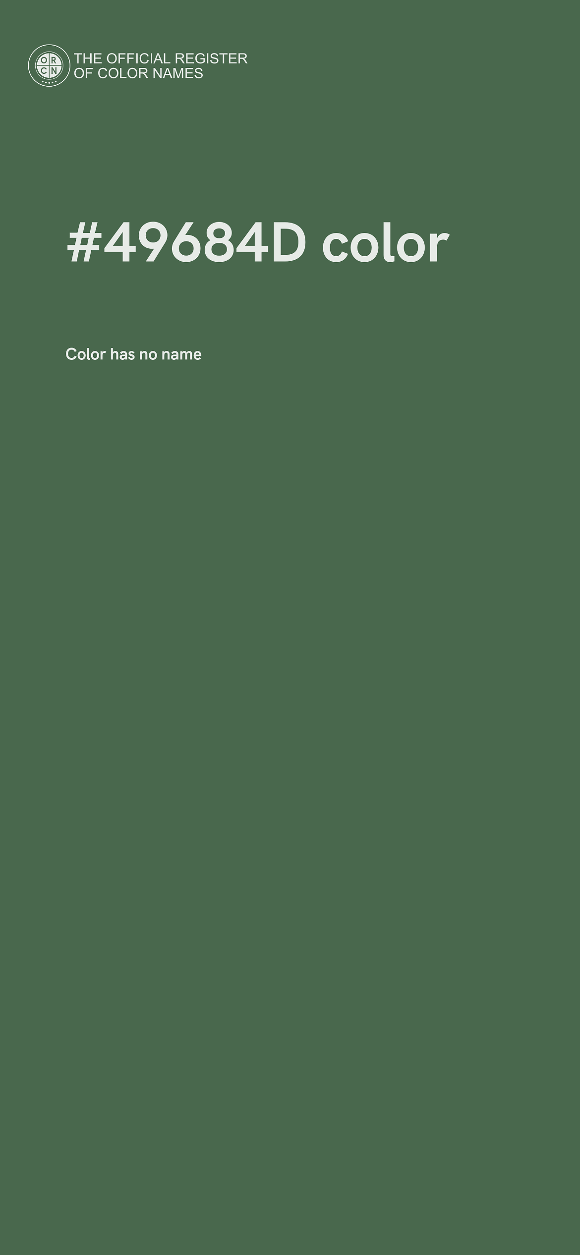 The digital color HEX #49684D belongs to the Green Color Family featuring Low Saturation (Saturation Family) and Neutral (Brightness Family).