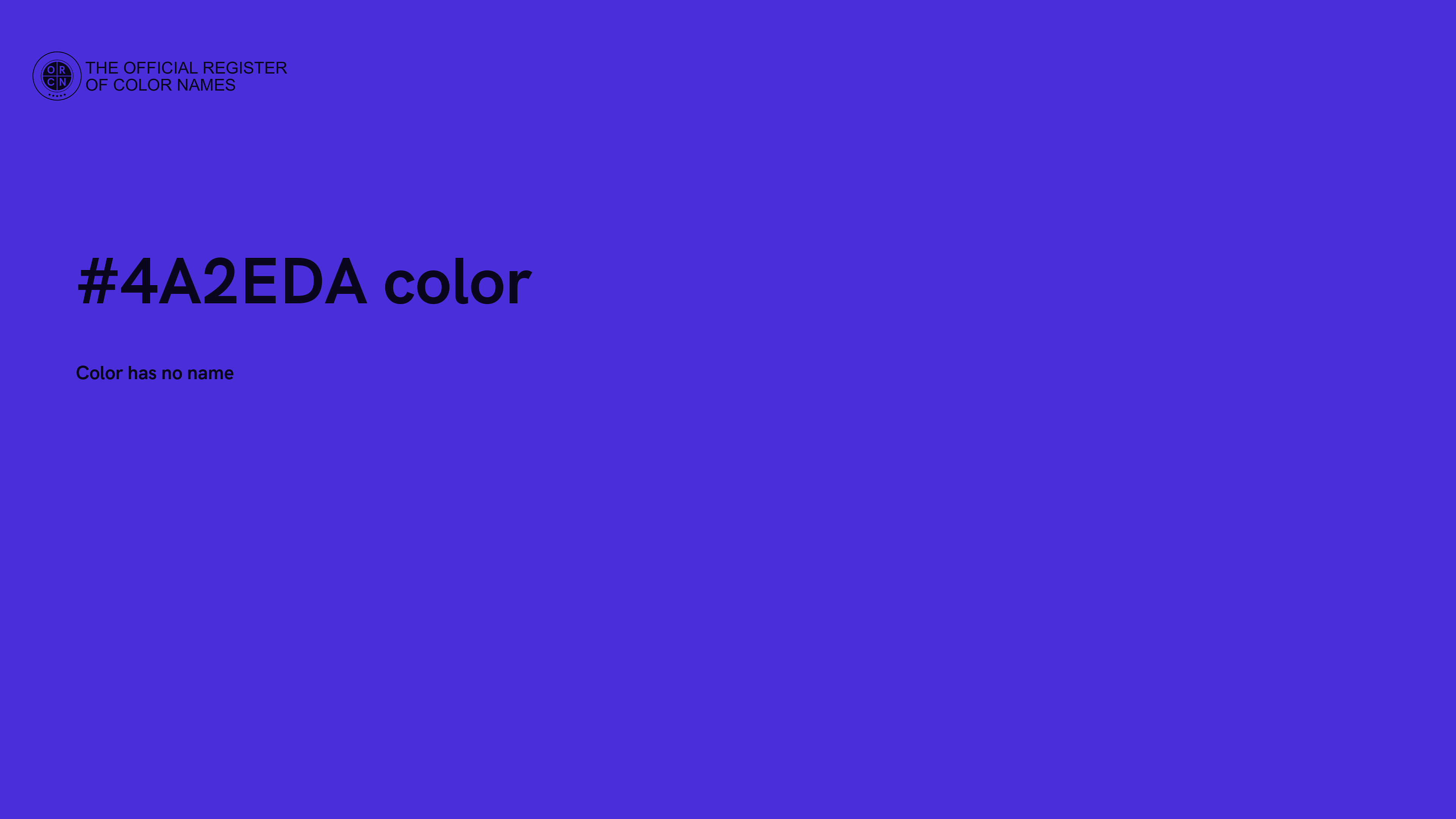 The digital color HEX #4A2EDA belongs to the Blue Color Family featuring High Saturation (Saturation Family) and Light (Brightness Family).