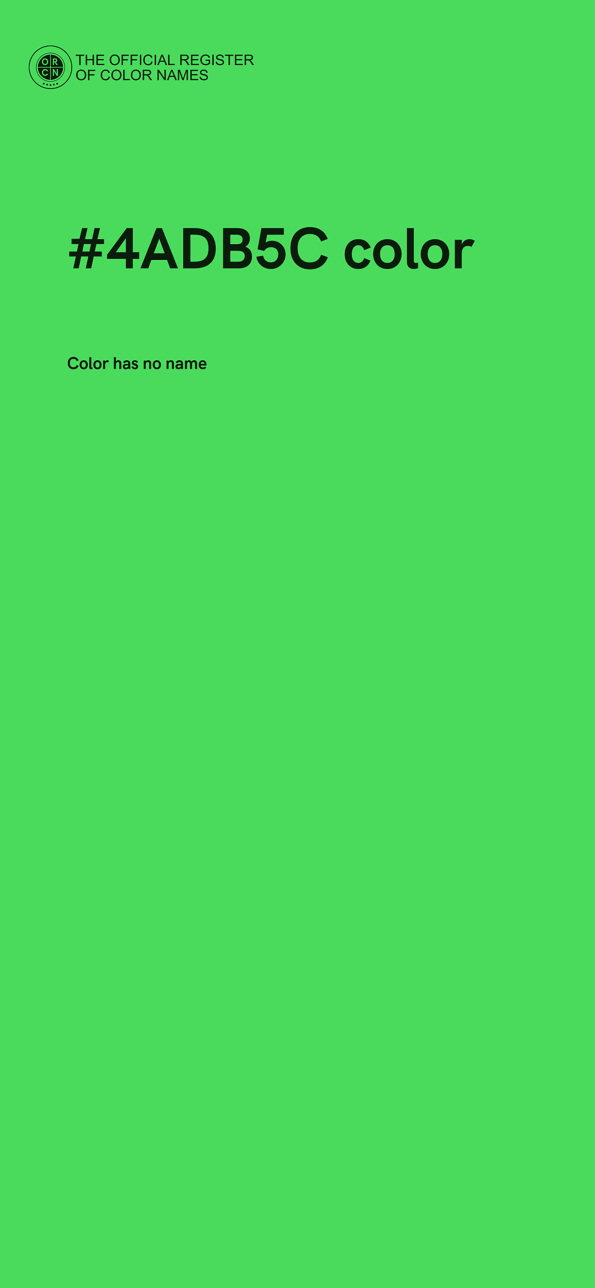 The digital color HEX #4ADB5C belongs to the Green Color Family featuring High Saturation (Saturation Family) and Light (Brightness Family).
