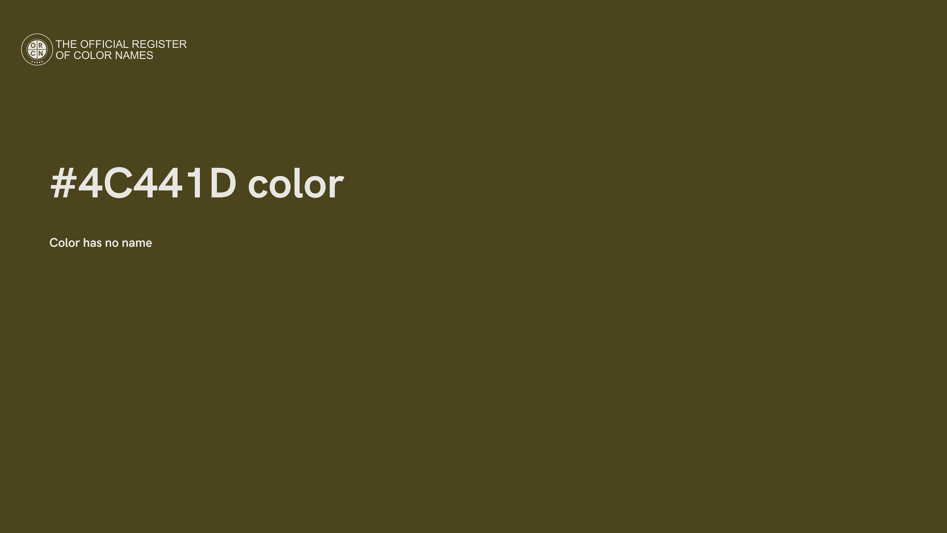 For printing in non digital world, #4C441D is represented in CMYK as 0 Cyan, 3 Magenta, 18 Yellow, and 70 Black (Key) (C:0 M:3 Y:18 K:70).