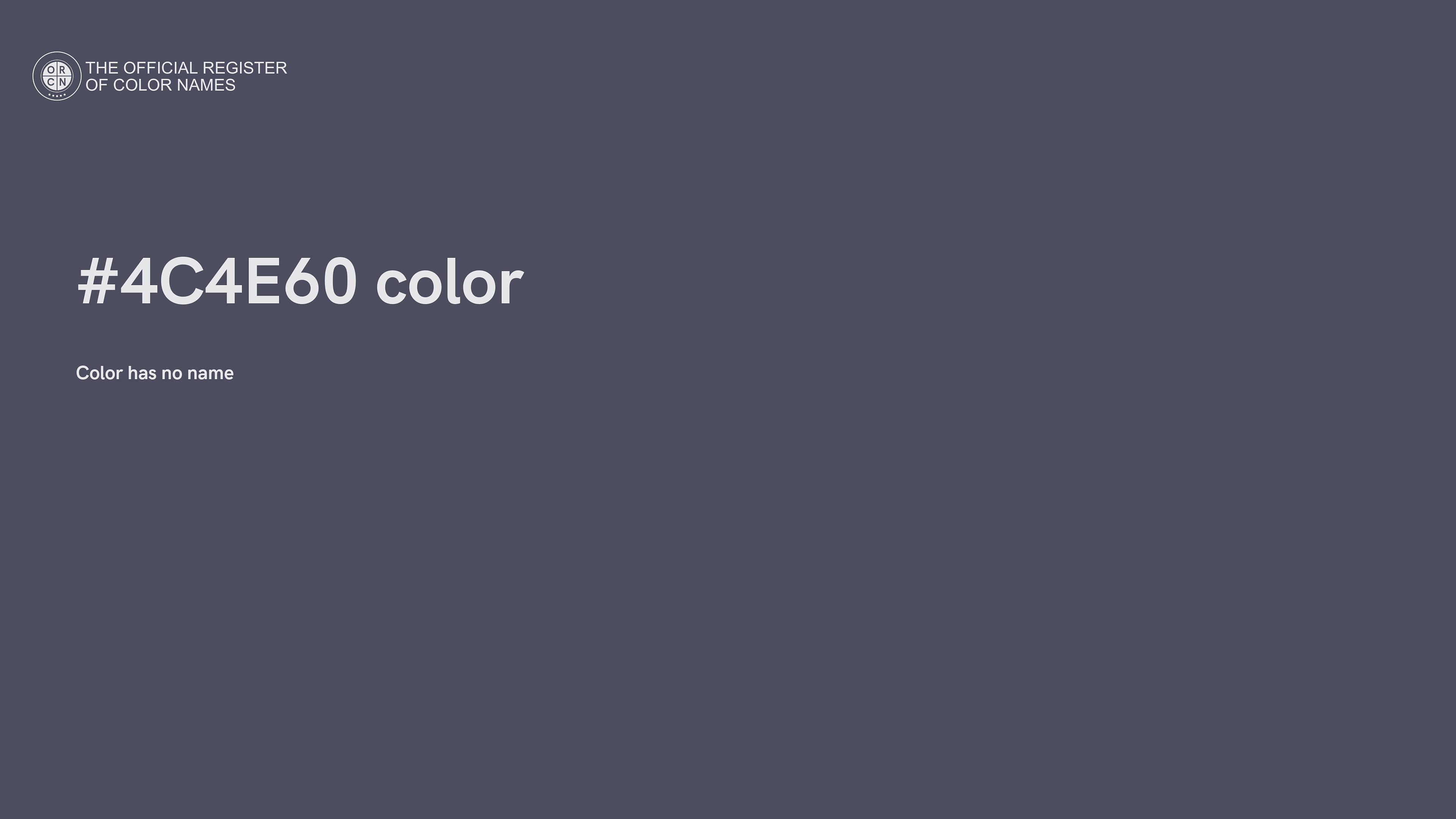 The digital color HEX #4C4E60 belongs to the Blue Color Family featuring Low Saturation (Saturation Family) and Neutral (Brightness Family).