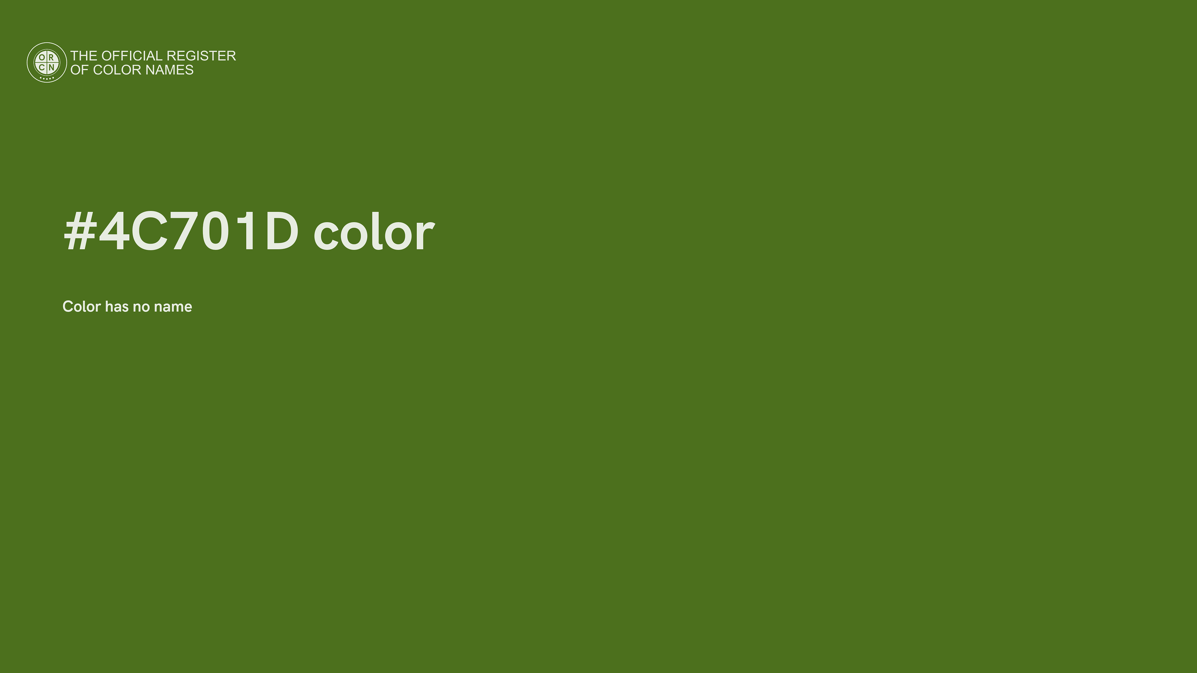 For printing in non digital world, #4C701D is represented in CMYK as 14 Cyan, 0 Magenta, 33 Yellow, and 56 Black (Key) (C:14 M:0 Y:33 K:56).