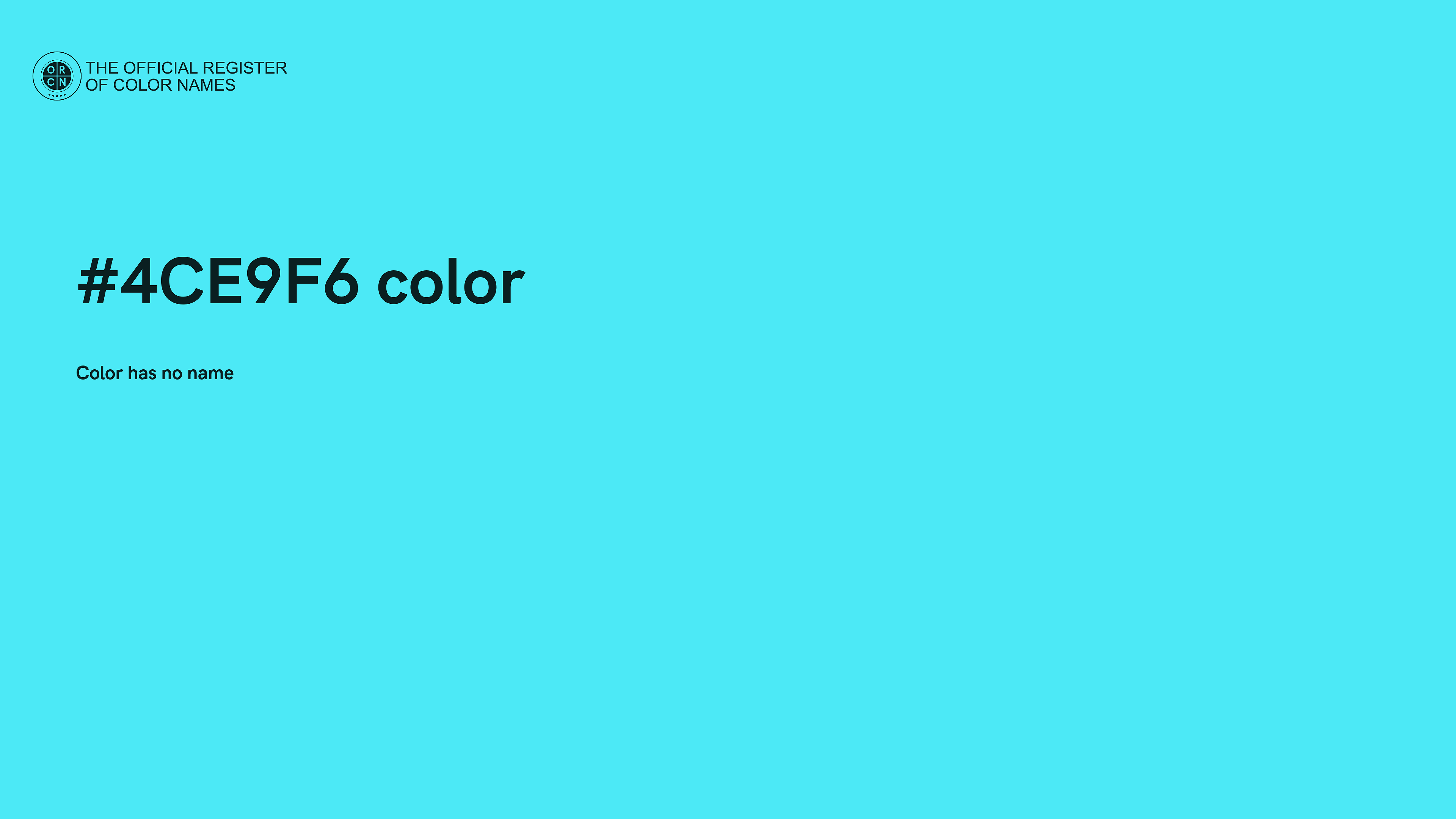 The digital color HEX #4CE9F6 belongs to the Cyan Color Family featuring Full Saturation (Saturation Family) and Very Light (Brightness Family).