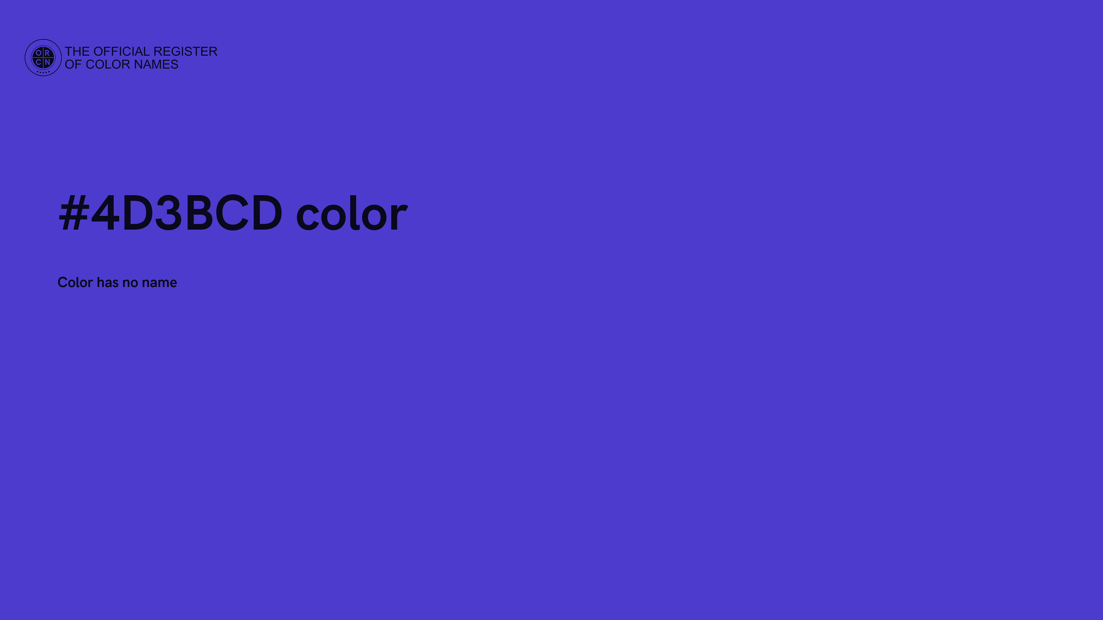 For printing in non digital world, #4D3BCD is represented in CMYK as 50 Cyan, 57 Magenta, 0 Yellow, and 20 Black (Key) (C:50 M:57 Y:0 K:20).