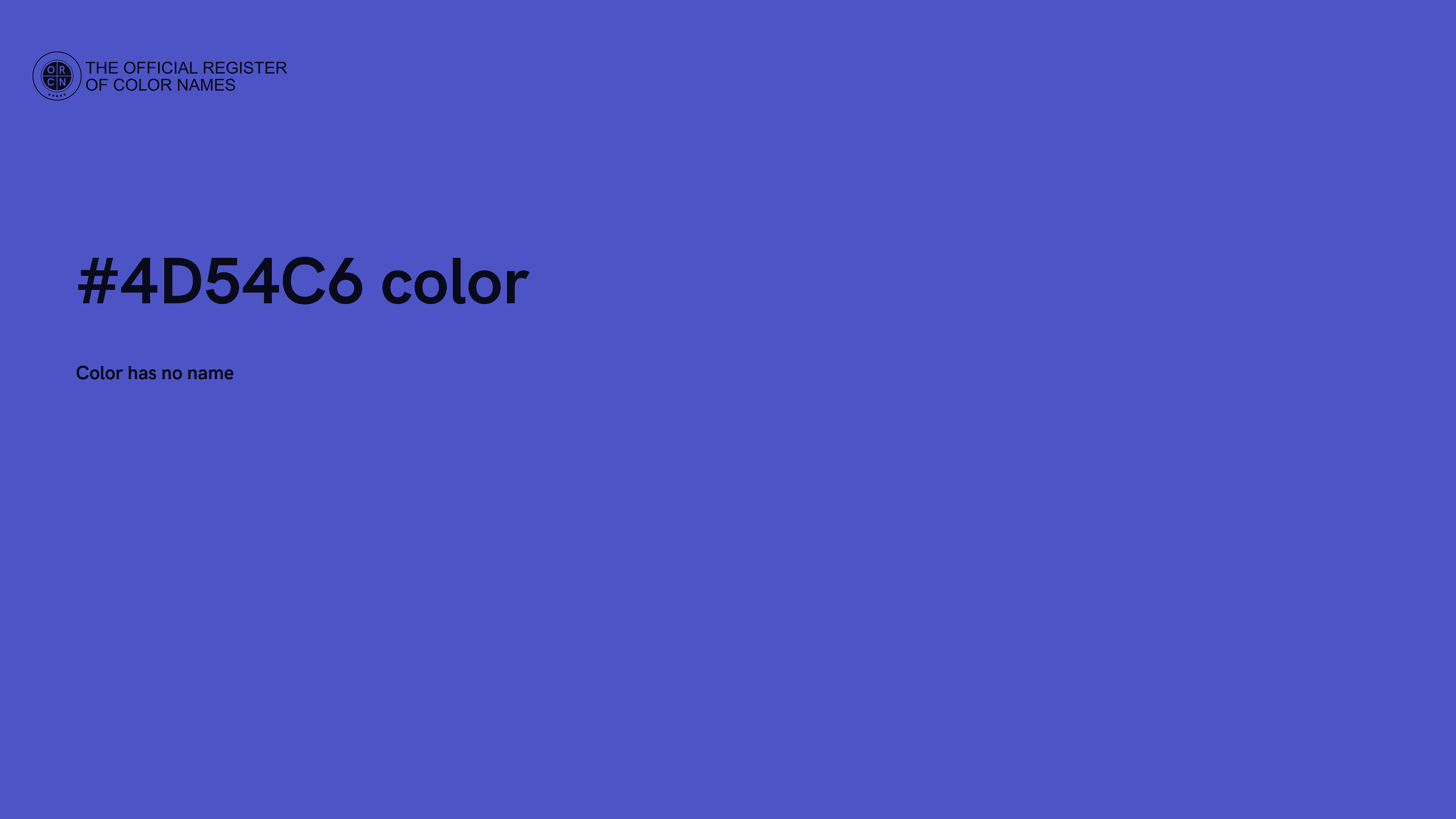 For printing in non digital world, #4D54C6 is represented in CMYK as 47 Cyan, 45 Magenta, 0 Yellow, and 22 Black (Key) (C:47 M:45 Y:0 K:22).