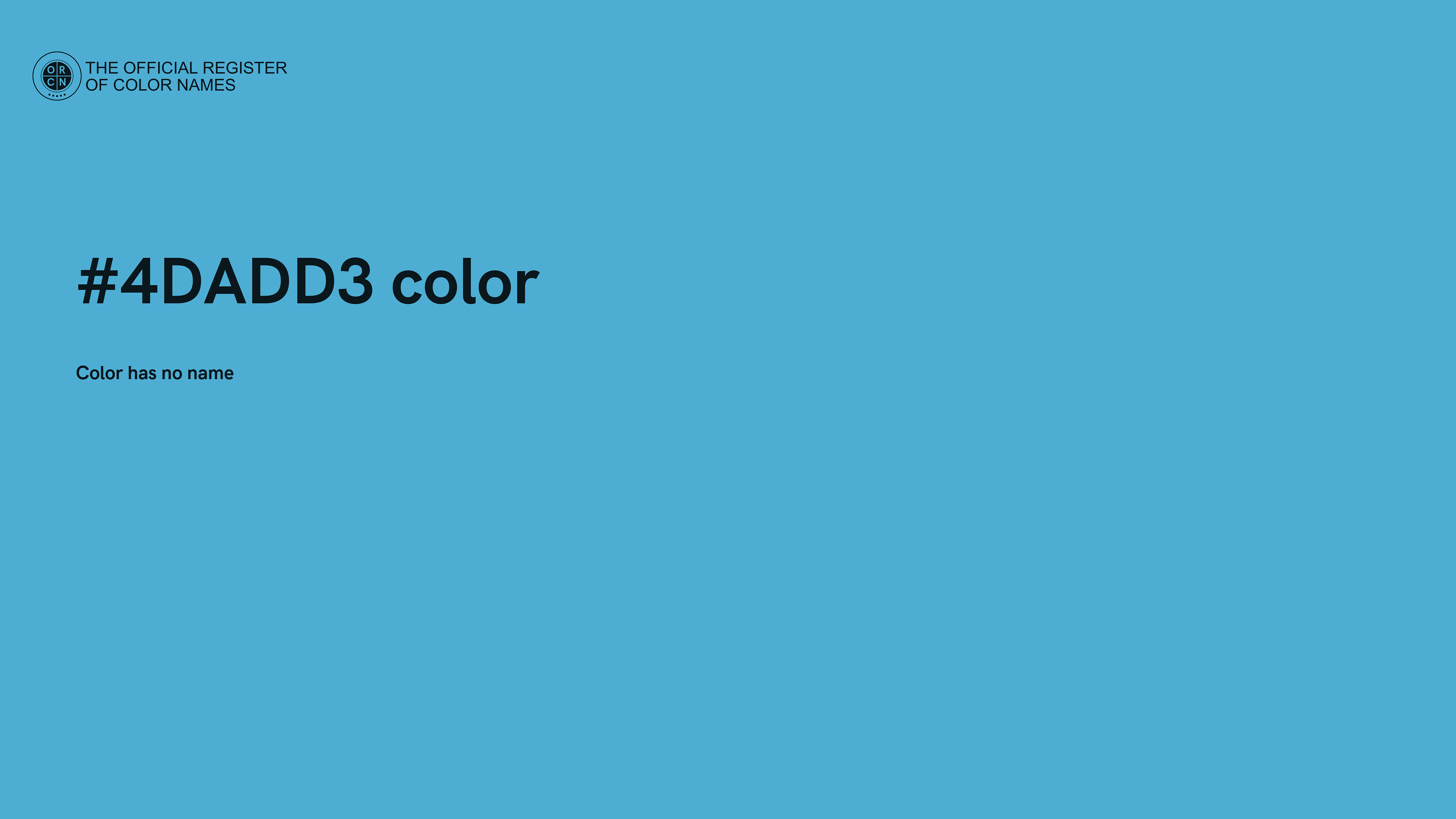 The digital color HEX #4DADD3 belongs to the Azure Color Family featuring High Saturation (Saturation Family) and Light (Brightness Family).