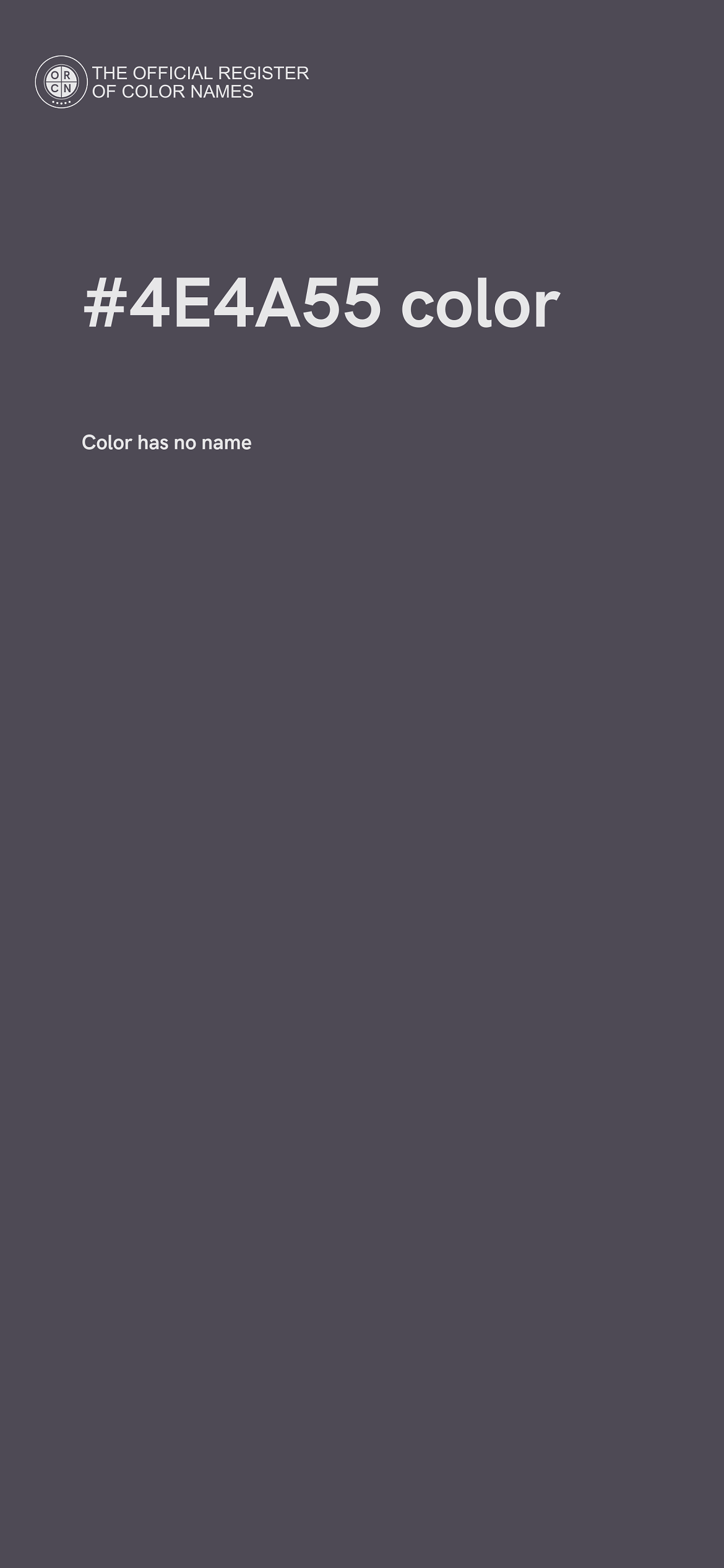 The digital color HEX #4E4A55 belongs to the Violet Color Family featuring Desaturated (Saturation Family) and Neutral (Brightness Family).
