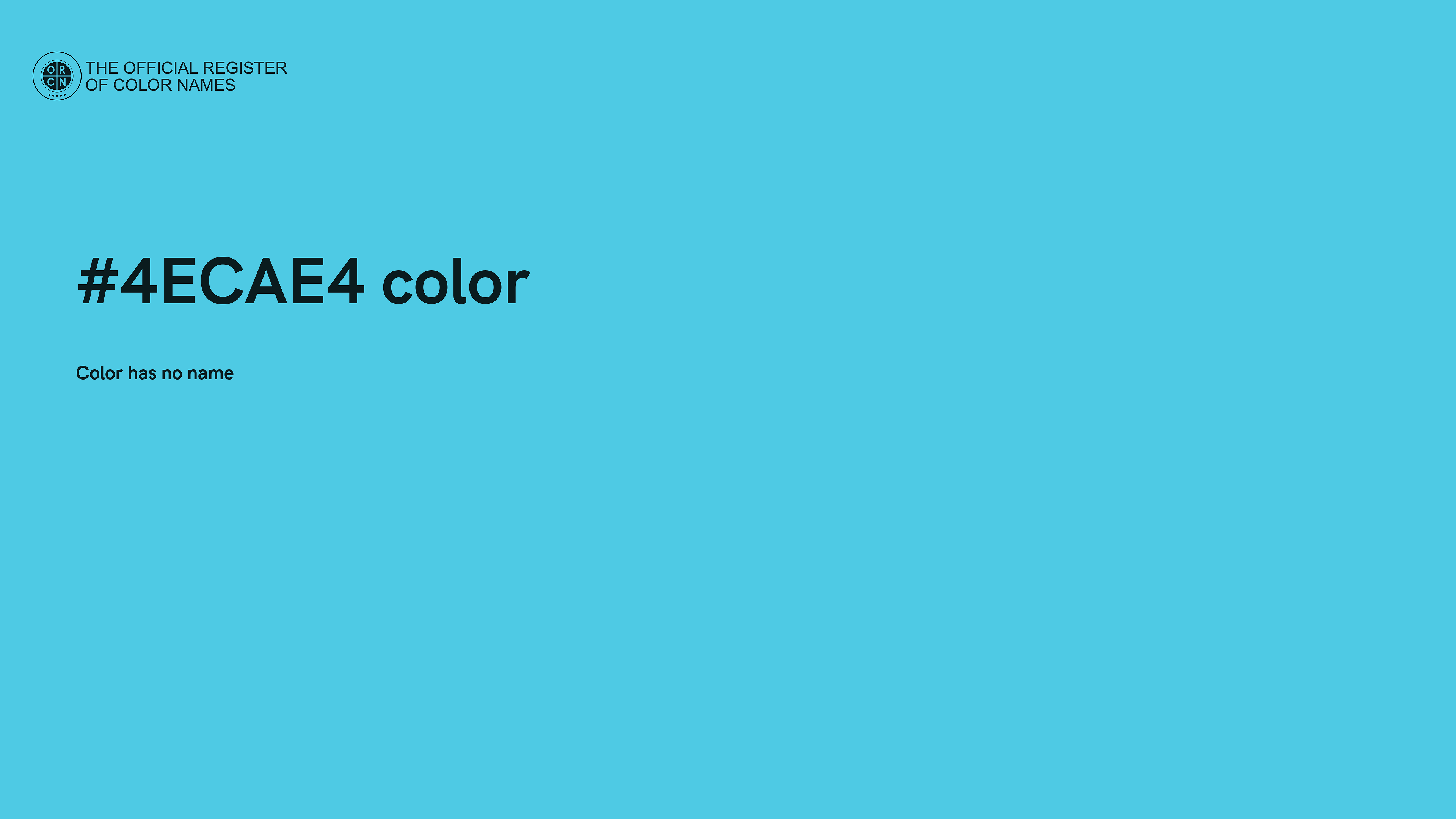 For printing in non digital world, #4ECAE4 is represented in CMYK as 59 Cyan, 10 Magenta, 0 Yellow, and 11 Black (Key) (C:59 M:10 Y:0 K:11).