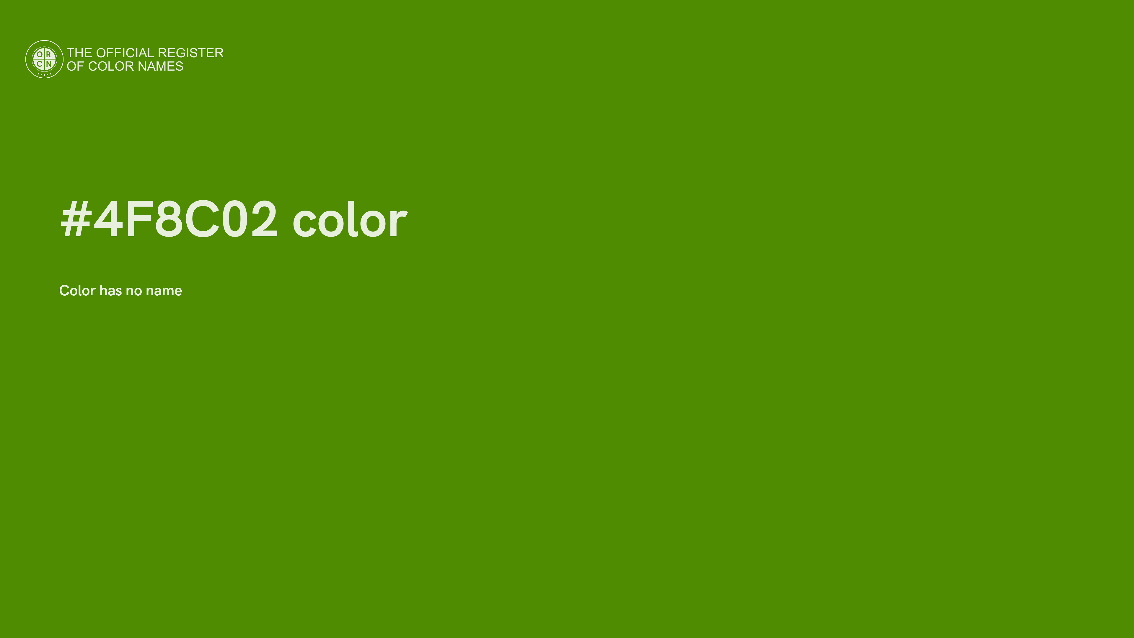 The digital color HEX #4F8C02 belongs to the Chartreuse Color Family featuring Full Saturation (Saturation Family) and Neutral (Brightness Family).