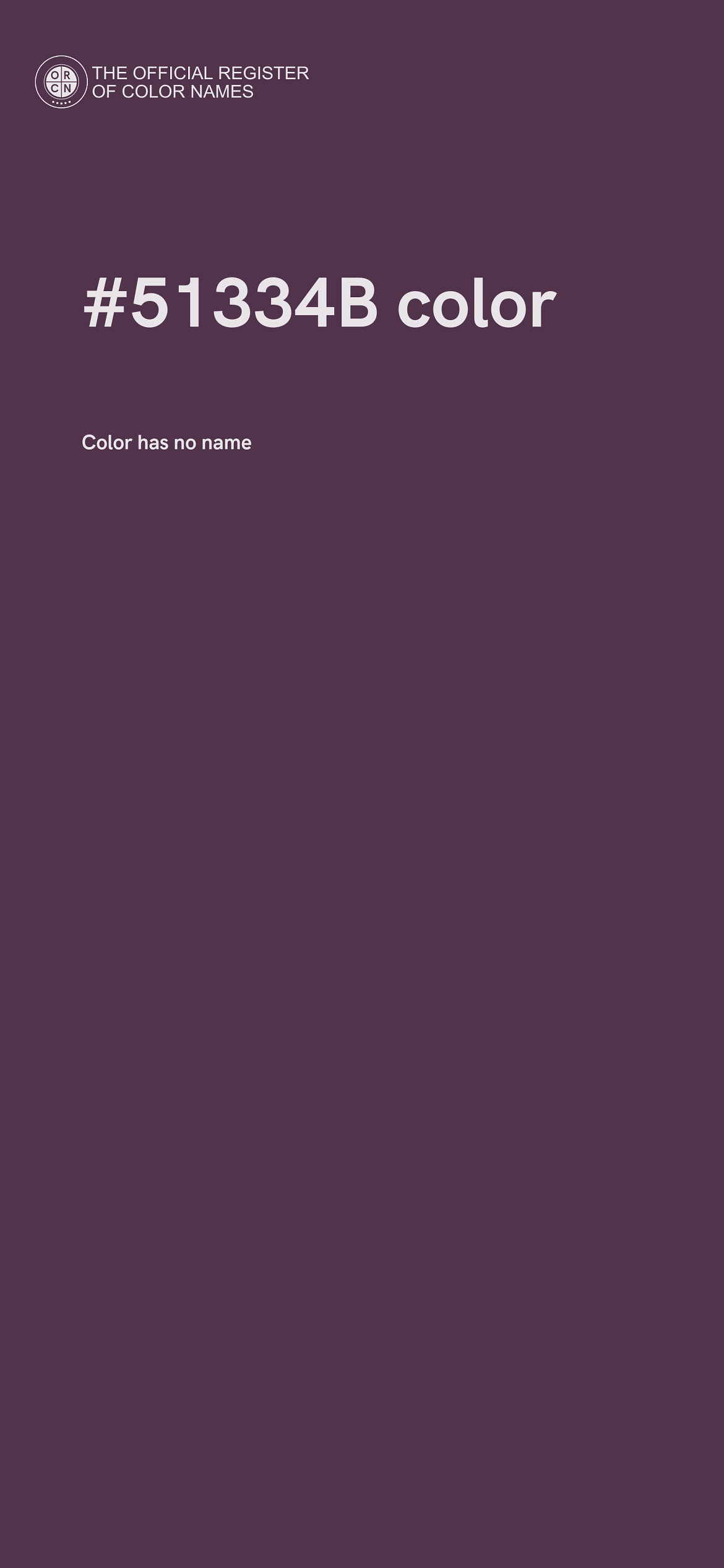 For printing in non digital world, #51334B is represented in CMYK as 0 Cyan, 12 Magenta, 2 Yellow, and 68 Black (Key) (C:0 M:12 Y:2 K:68).