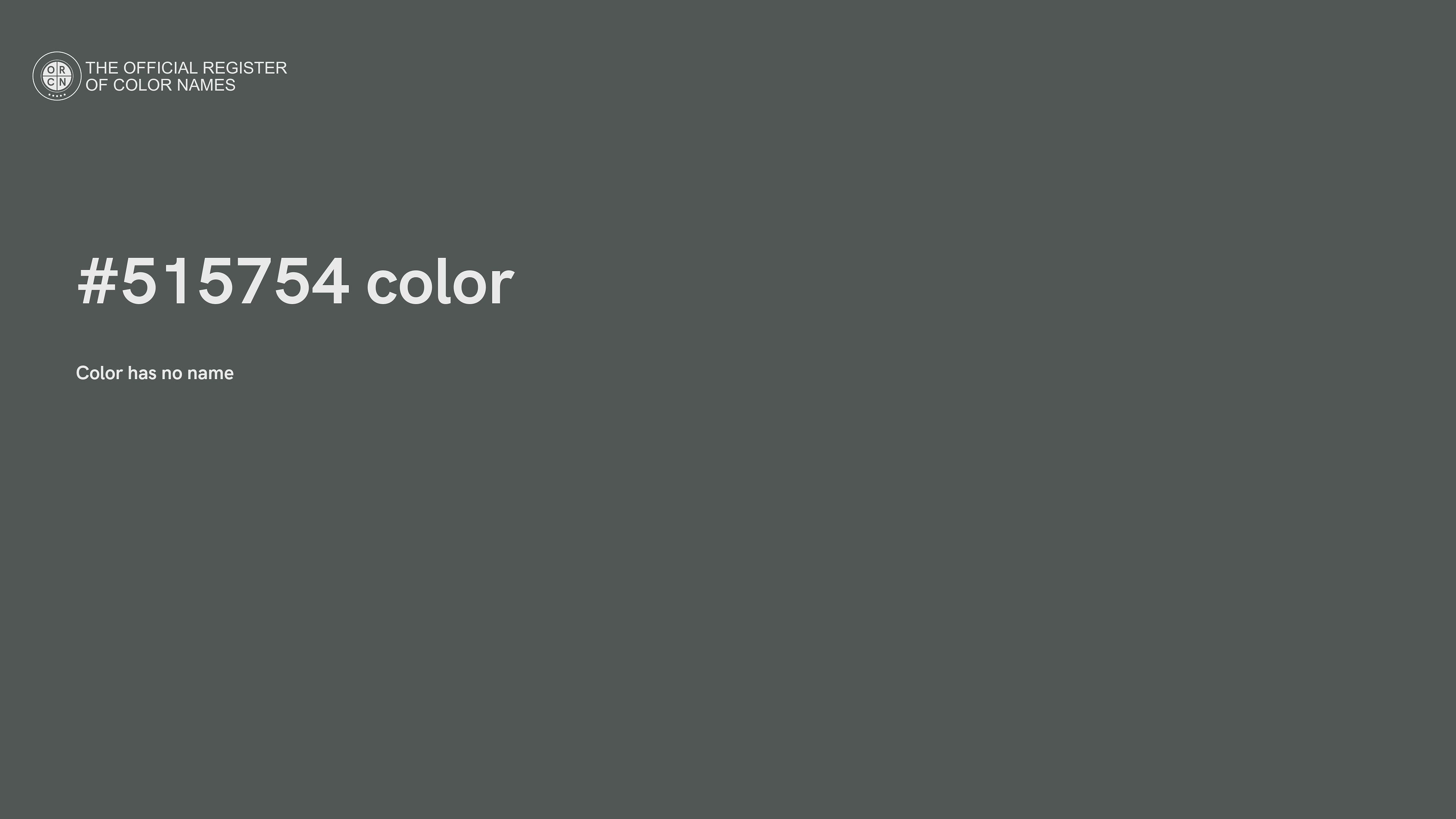 The digital color HEX #515754 belongs to the Spring Green Color Family featuring Desaturated (Saturation Family) and Neutral (Brightness Family).