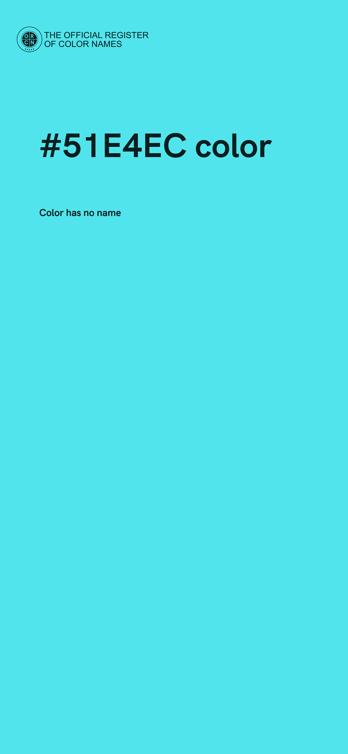 The digital color HEX #51E4EC belongs to the Cyan Color Family featuring High Saturation (Saturation Family) and Very Light (Brightness Family).