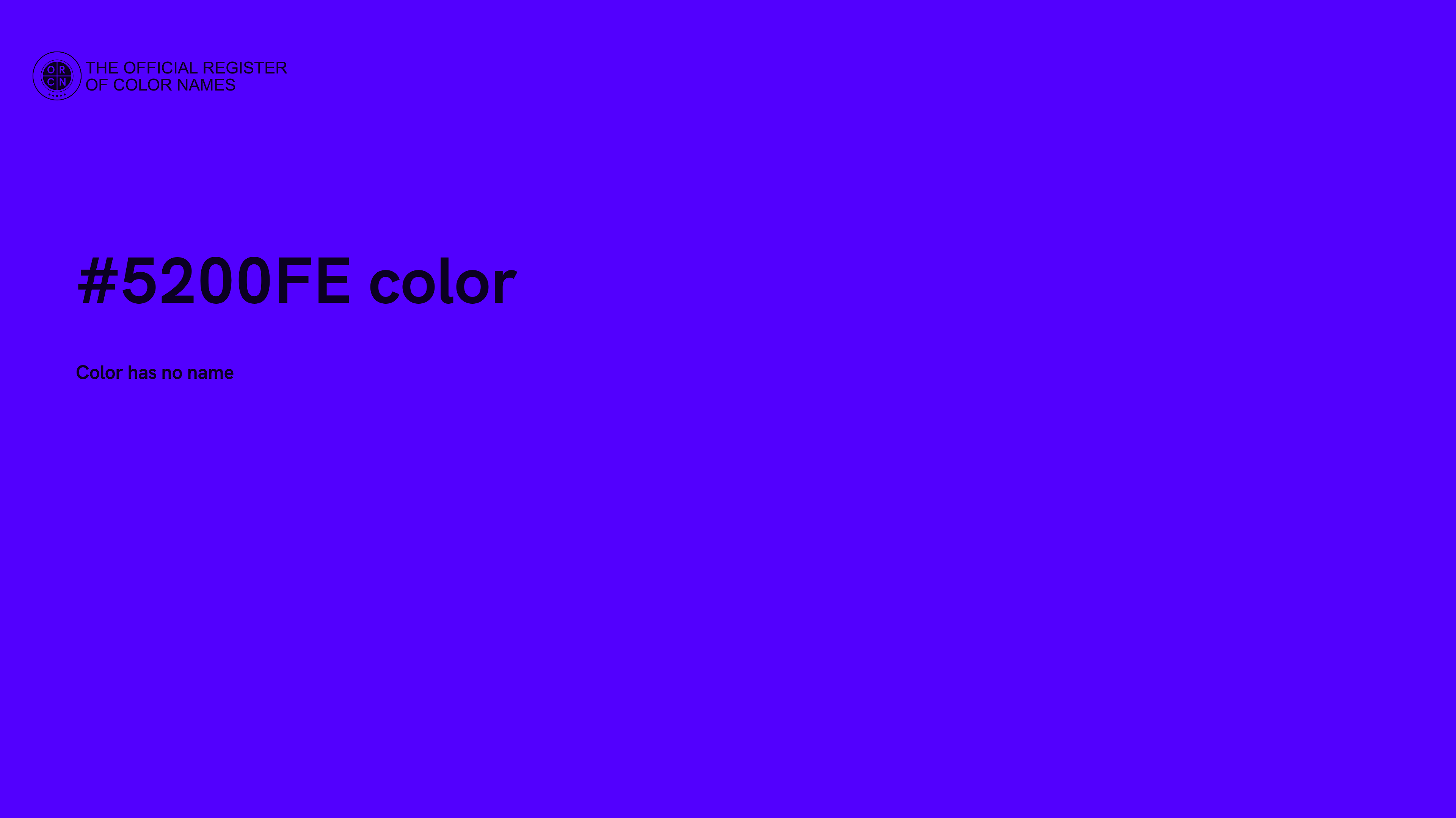 The digital color HEX #5200FE belongs to the Violet Color Family featuring Full Saturation (Saturation Family) and Light (Brightness Family).