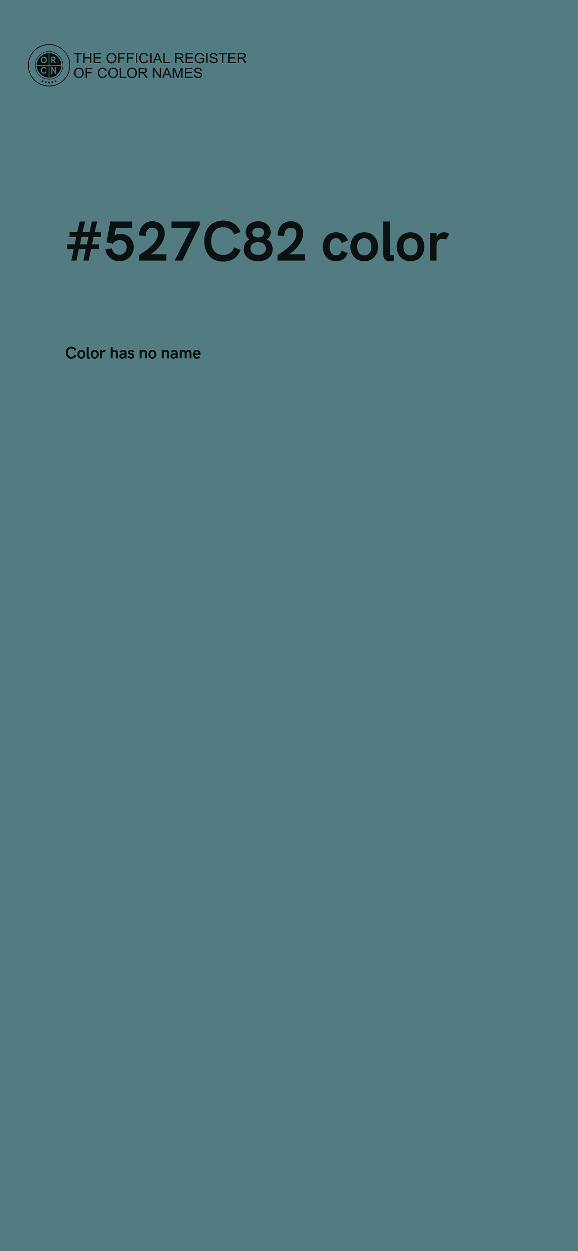 For printing in non digital world, #527C82 is represented in CMYK as 19 Cyan, 2 Magenta, 0 Yellow, and 49 Black (Key) (C:19 M:2 Y:0 K:49).