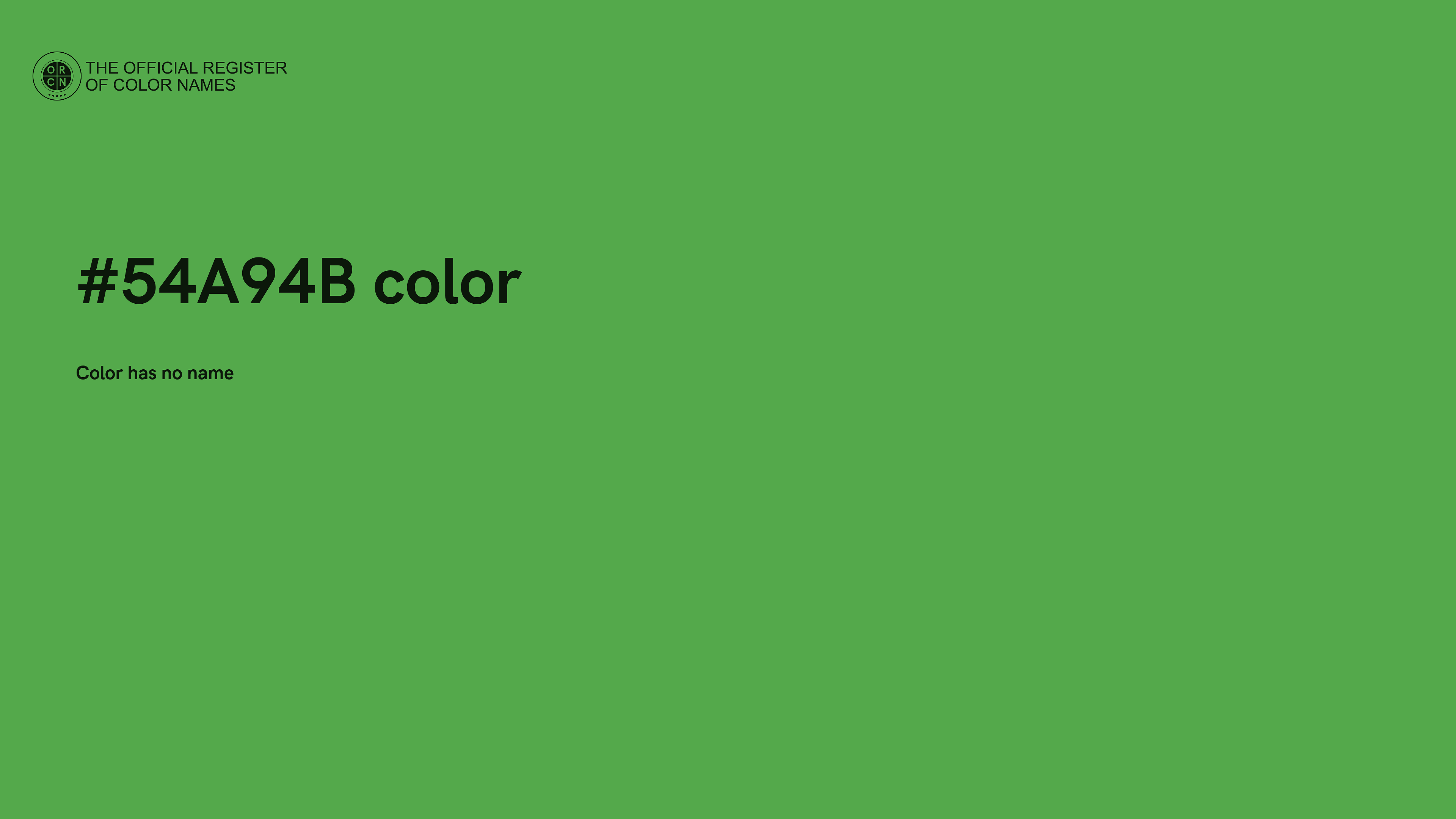 The digital color HEX #54A94B belongs to the Green Color Family featuring Mild Saturation (Saturation Family) and Light (Brightness Family).