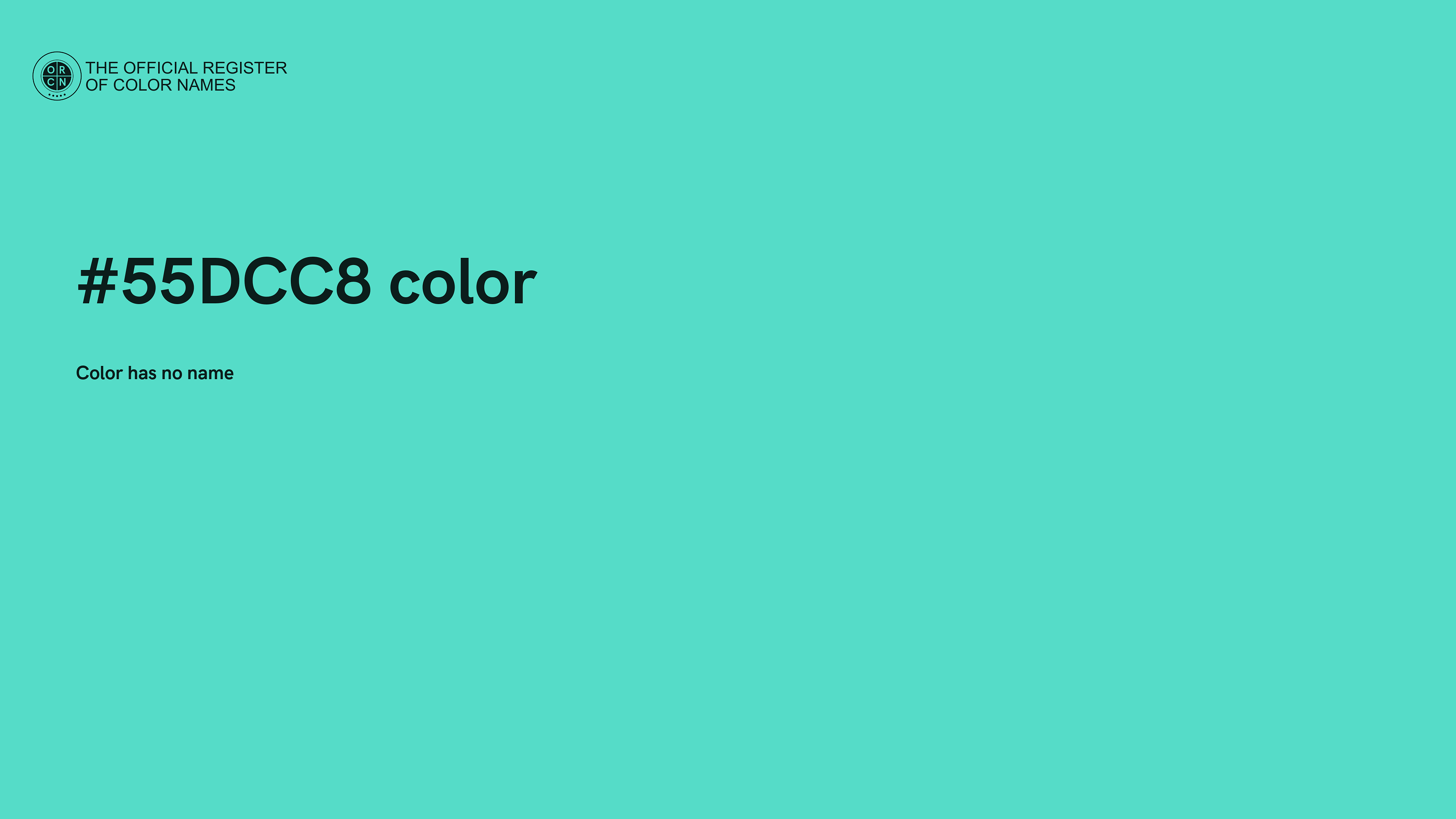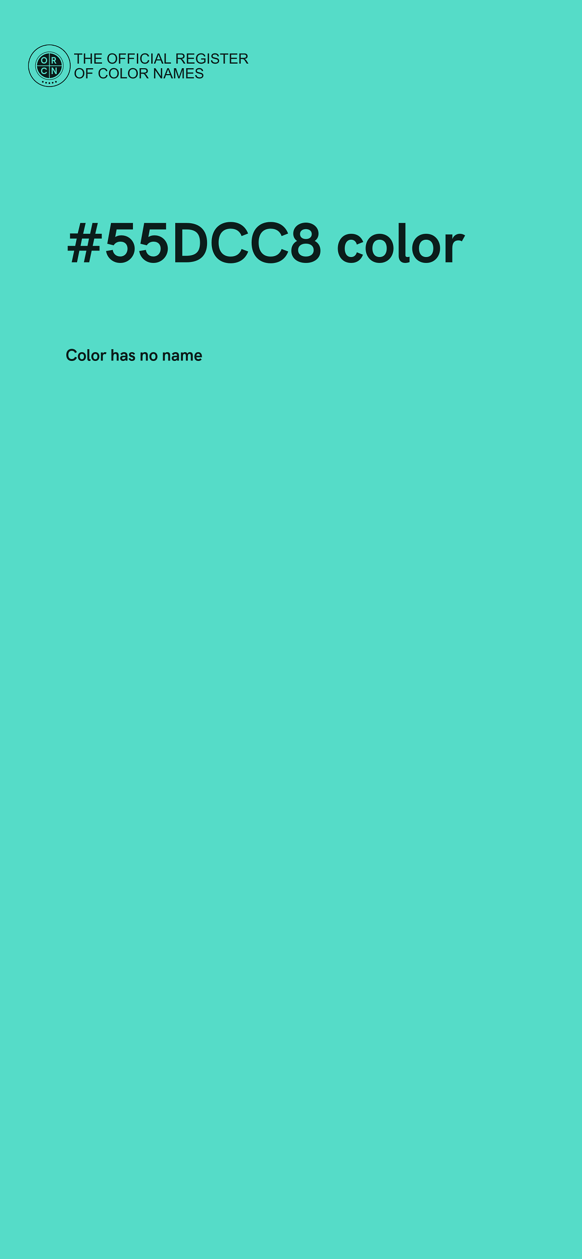 The digital color HEX #55DCC8 belongs to the Cyan Color Family featuring High Saturation (Saturation Family) and Very Light (Brightness Family).