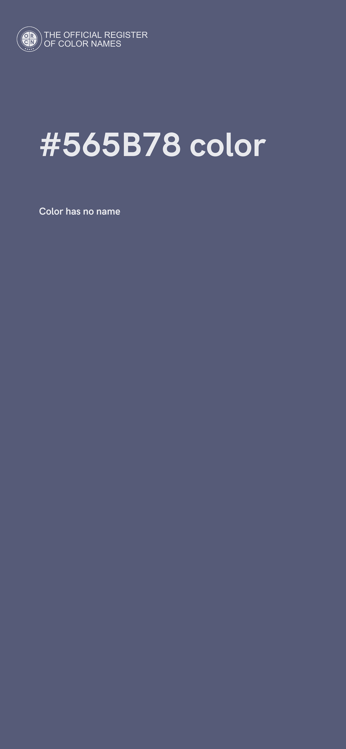 The digital color HEX #565B78 belongs to the Blue Color Family featuring Low Saturation (Saturation Family) and Light (Brightness Family).