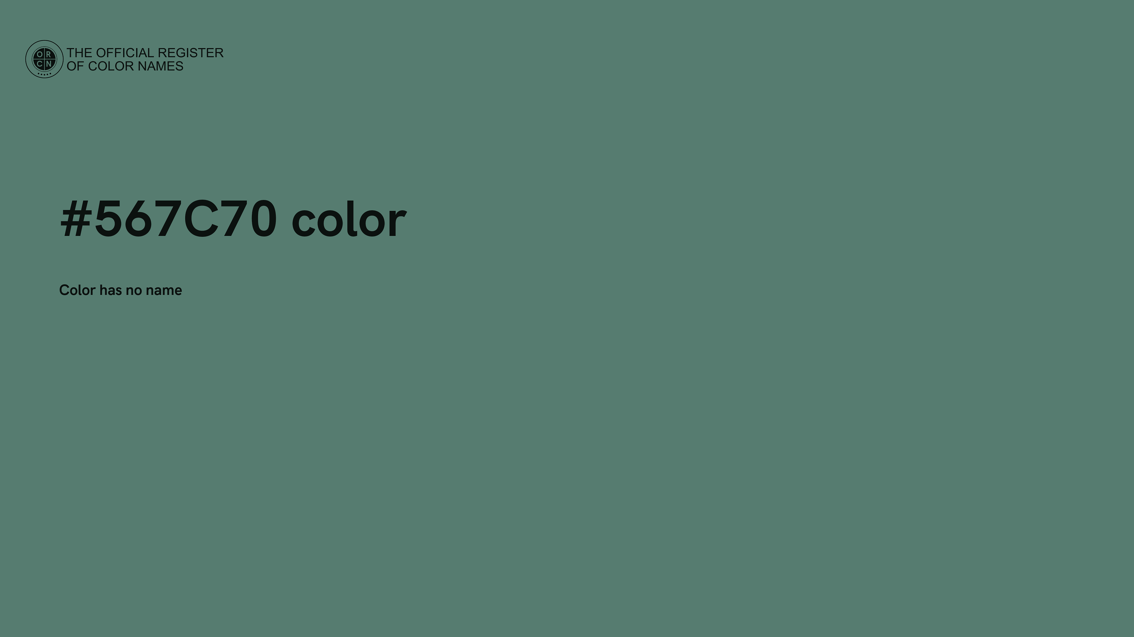 The digital color HEX #567C70 belongs to the Spring Green Color Family featuring Low Saturation (Saturation Family) and Light (Brightness Family).