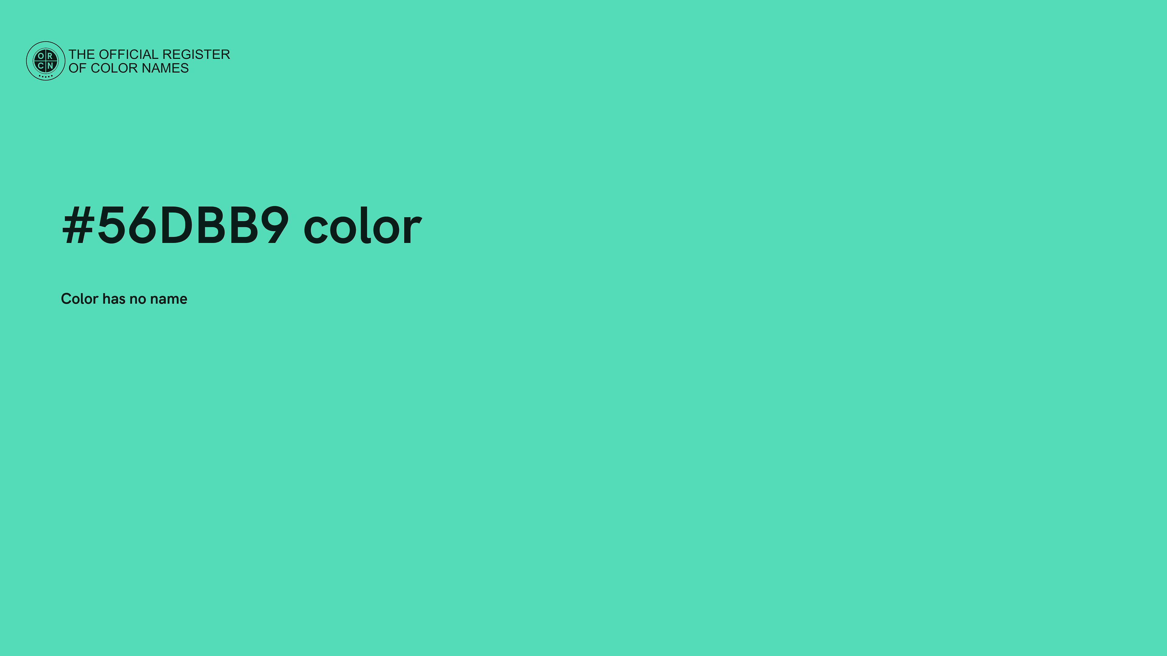 The digital color HEX #56DBB9 belongs to the Cyan Color Family featuring High Saturation (Saturation Family) and Very Light (Brightness Family).