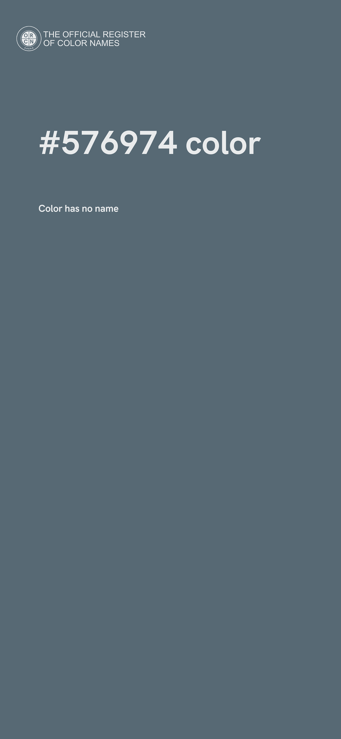 For printing in non digital world, #576974 is represented in CMYK as 11 Cyan, 4 Magenta, 0 Yellow, and 55 Black (Key) (C:11 M:4 Y:0 K:55).