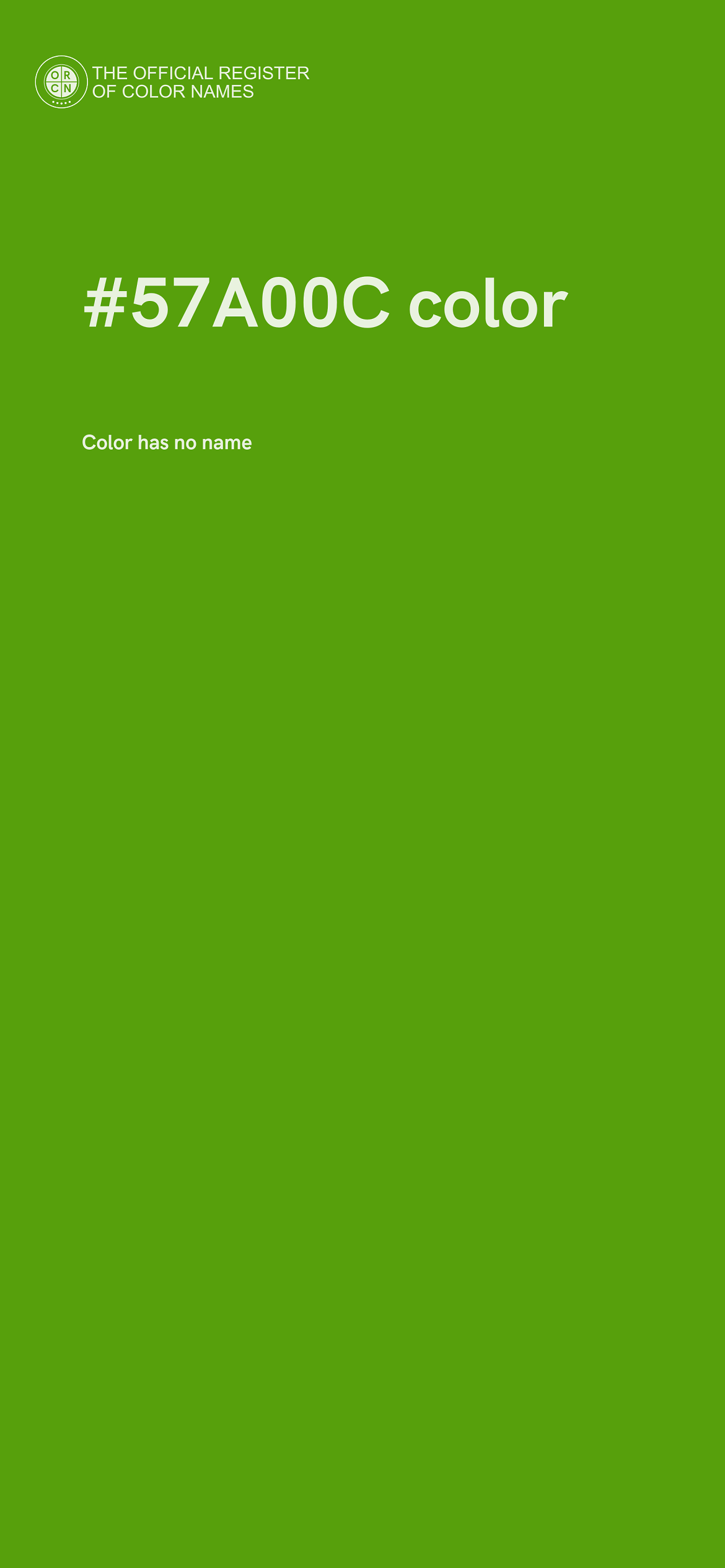 The digital color HEX #57A00C belongs to the Chartreuse Color Family featuring Full Saturation (Saturation Family) and Neutral (Brightness Family).