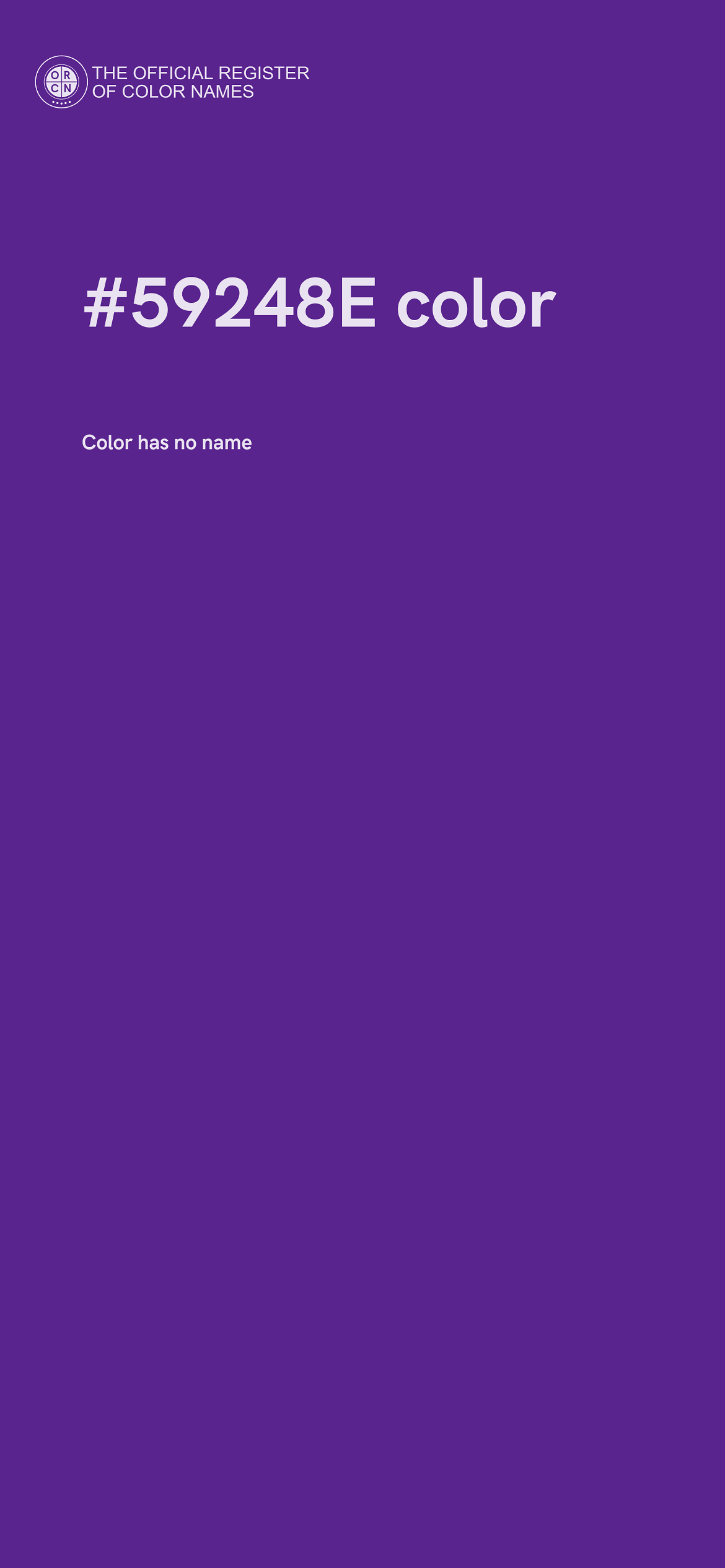 The digital color HEX #59248E belongs to the Violet Color Family featuring High Saturation (Saturation Family) and Neutral (Brightness Family).