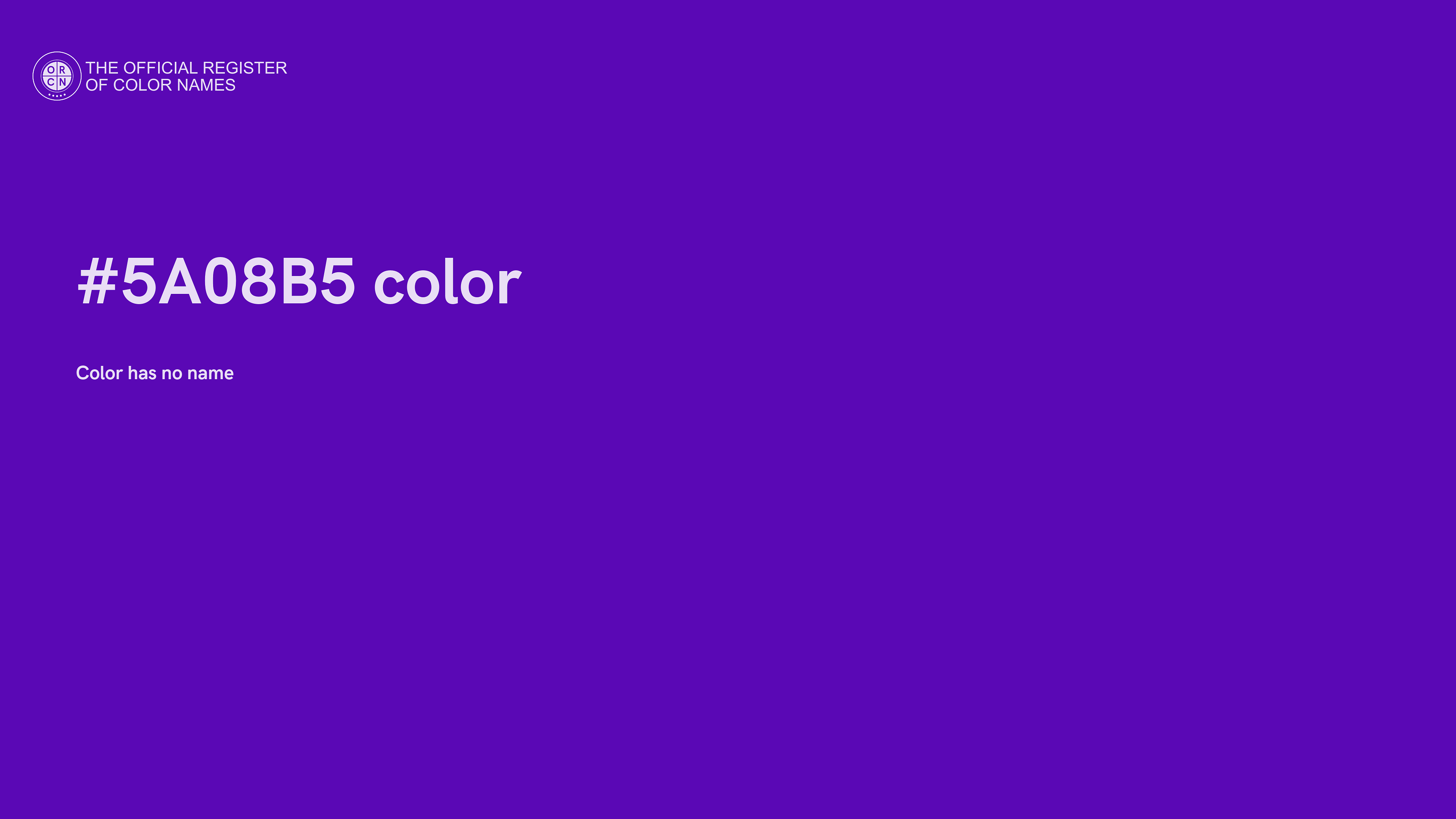 The digital color HEX #5A08B5 belongs to the Violet Color Family featuring Full Saturation (Saturation Family) and Neutral (Brightness Family).