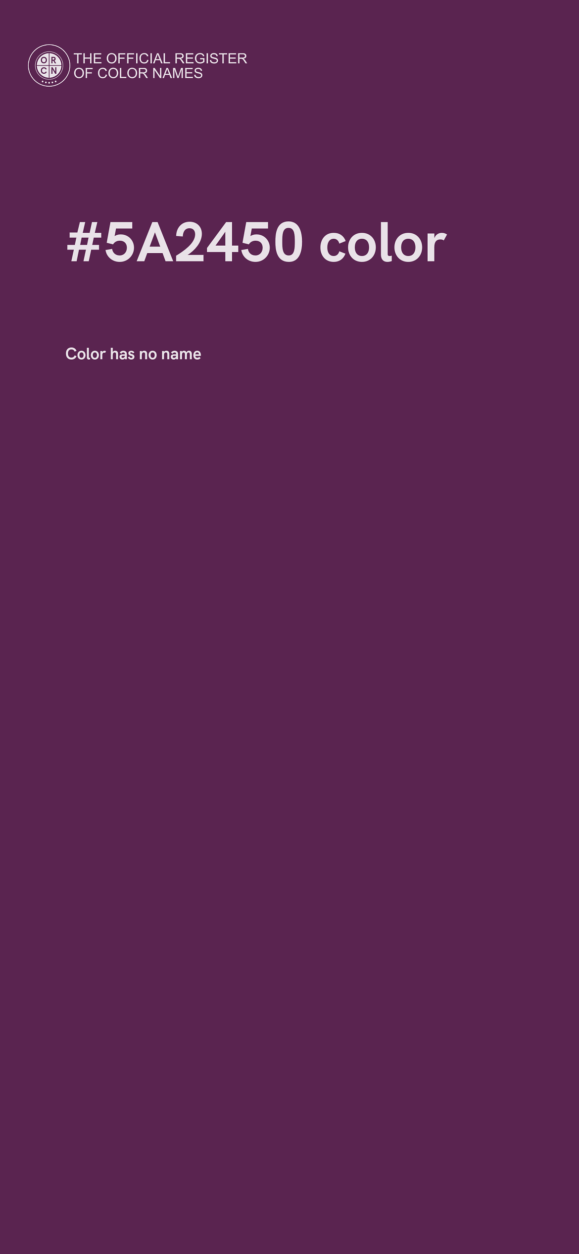 The digital color HEX #5A2450 belongs to the Magenta Color Family featuring Moderate Saturation (Saturation Family) and Neutral (Brightness Family).