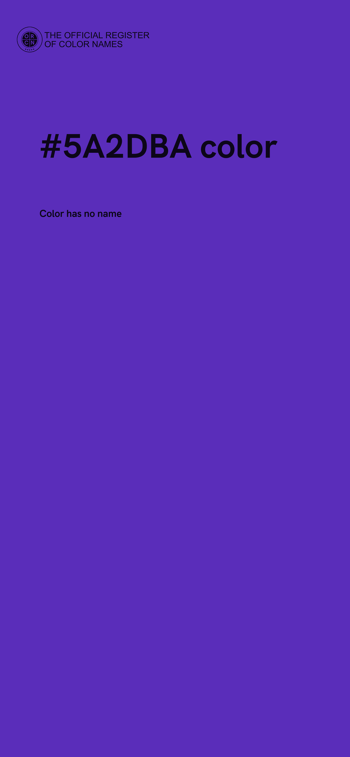 For printing in non digital world, #5A2DBA is represented in CMYK as 38 Cyan, 55 Magenta, 0 Yellow, and 27 Black (Key) (C:38 M:55 Y:0 K:27).