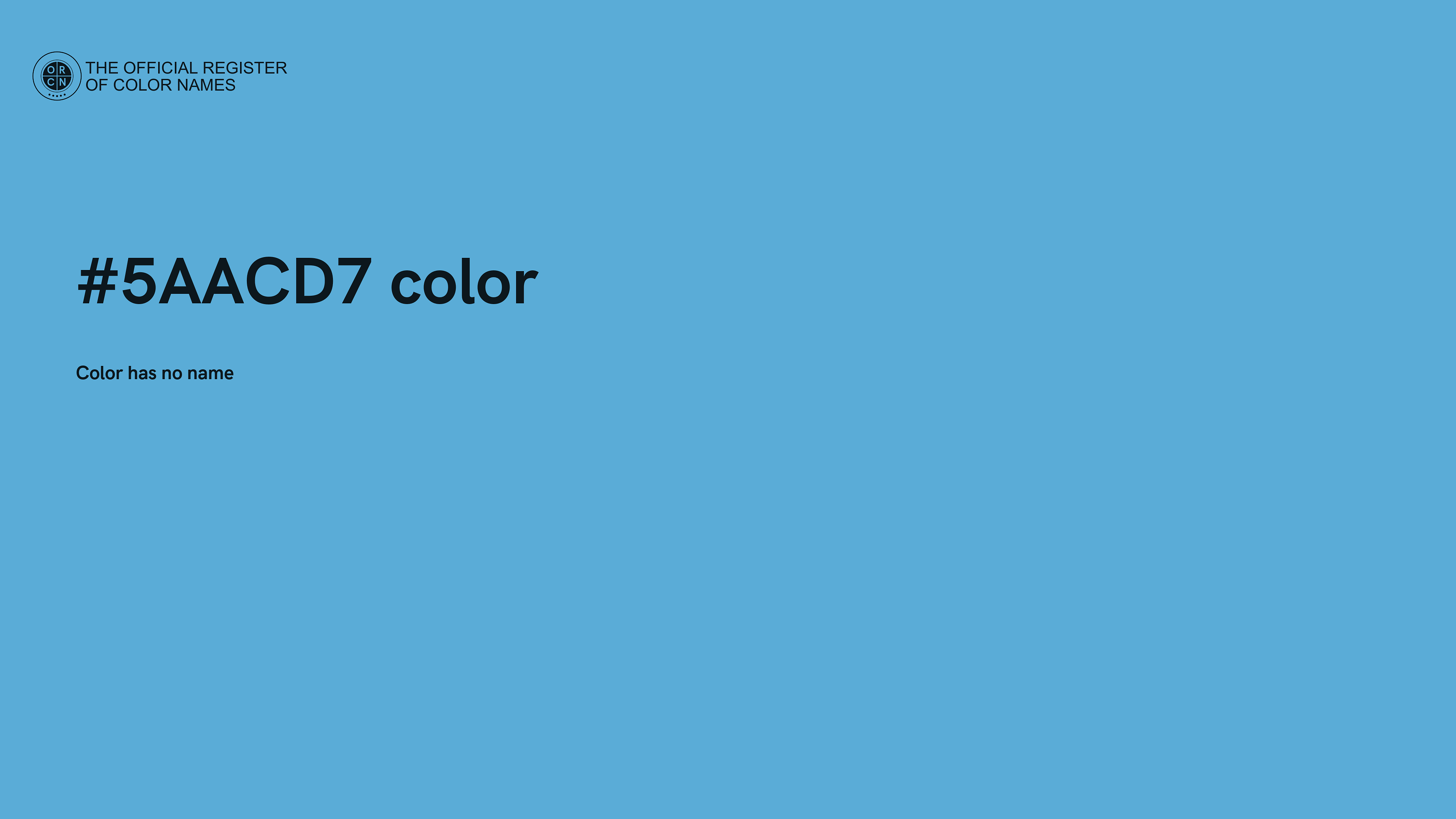The digital color HEX #5AACD7 belongs to the Azure Color Family featuring High Saturation (Saturation Family) and Very Light (Brightness Family).