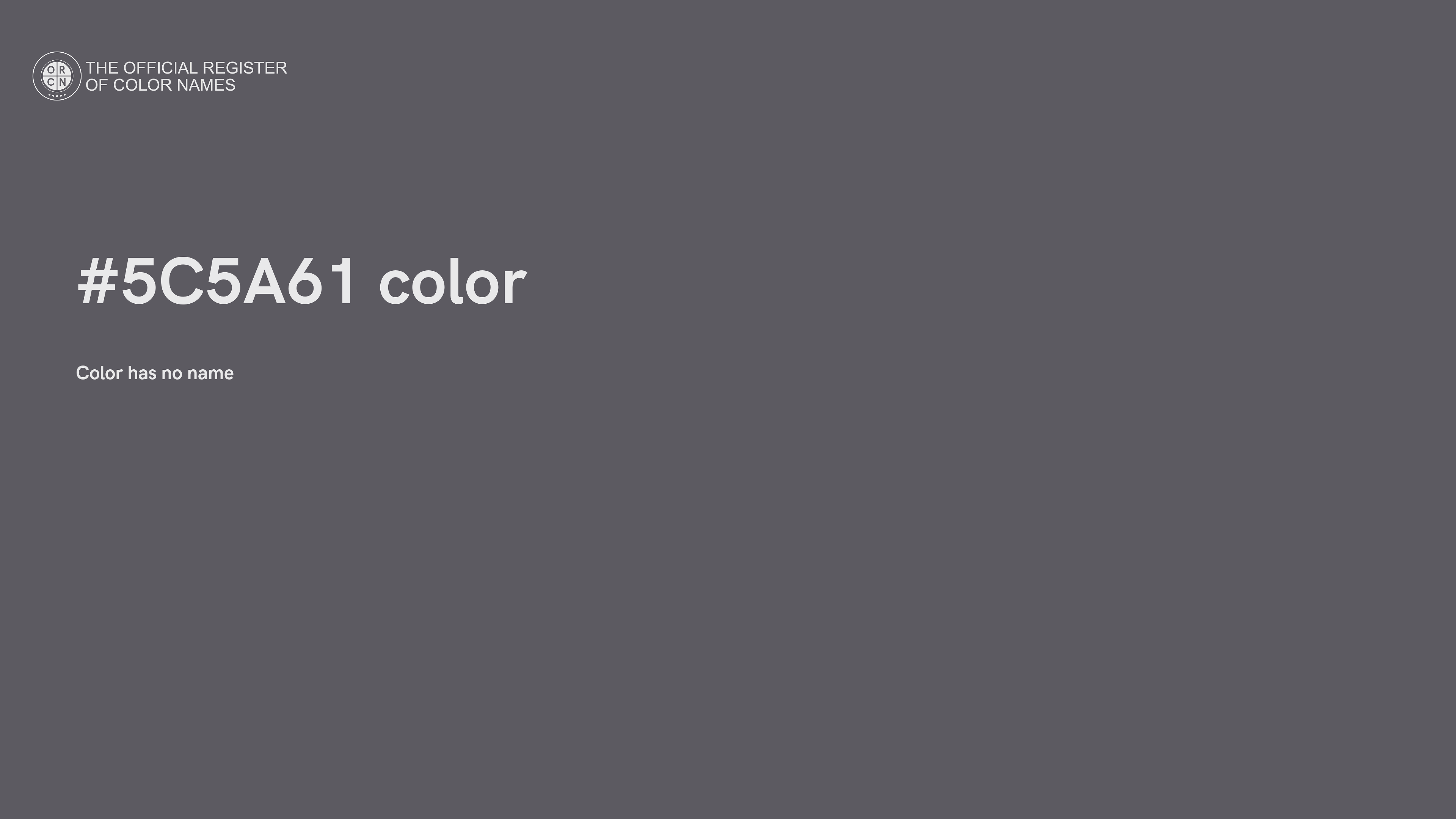 The digital color HEX #5C5A61 belongs to the Violet Color Family featuring Desaturated (Saturation Family) and Neutral (Brightness Family).